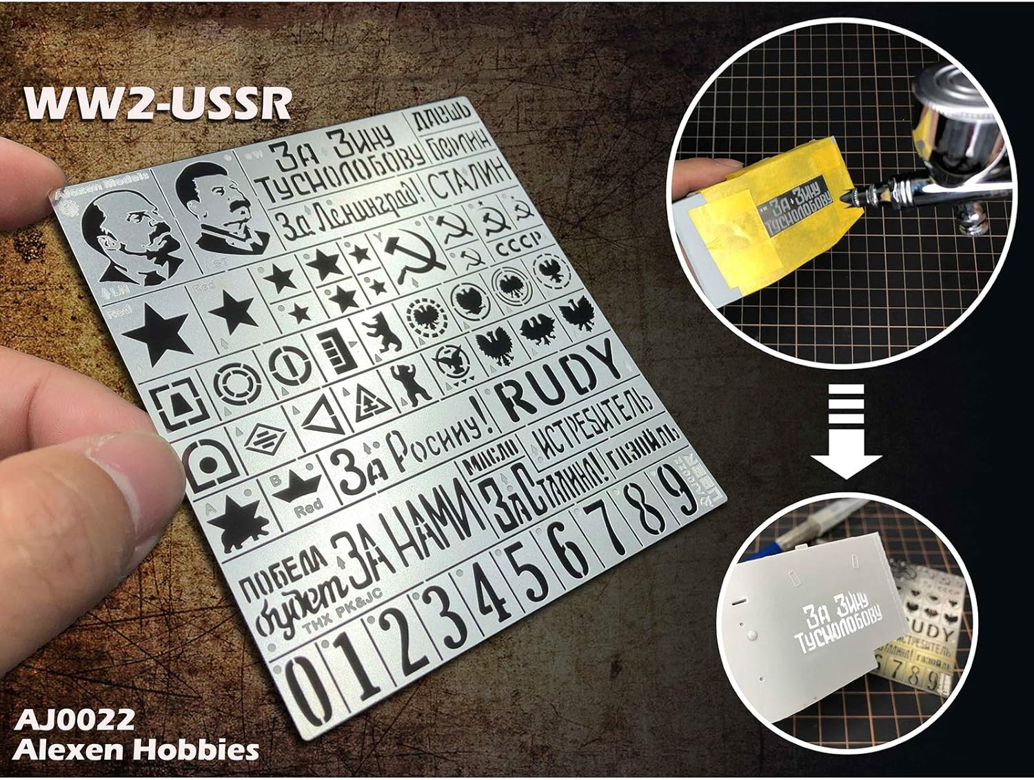 Prodotto di alta qualità Deve essere utilizzato con matite per stencil non incluse nell'articolo Adatto per: 1/35 WWII USSR modelli militari di veicoli cisterna Materiale: acciaio inossidabile 304 La confezione include: 1 stencil (PC)