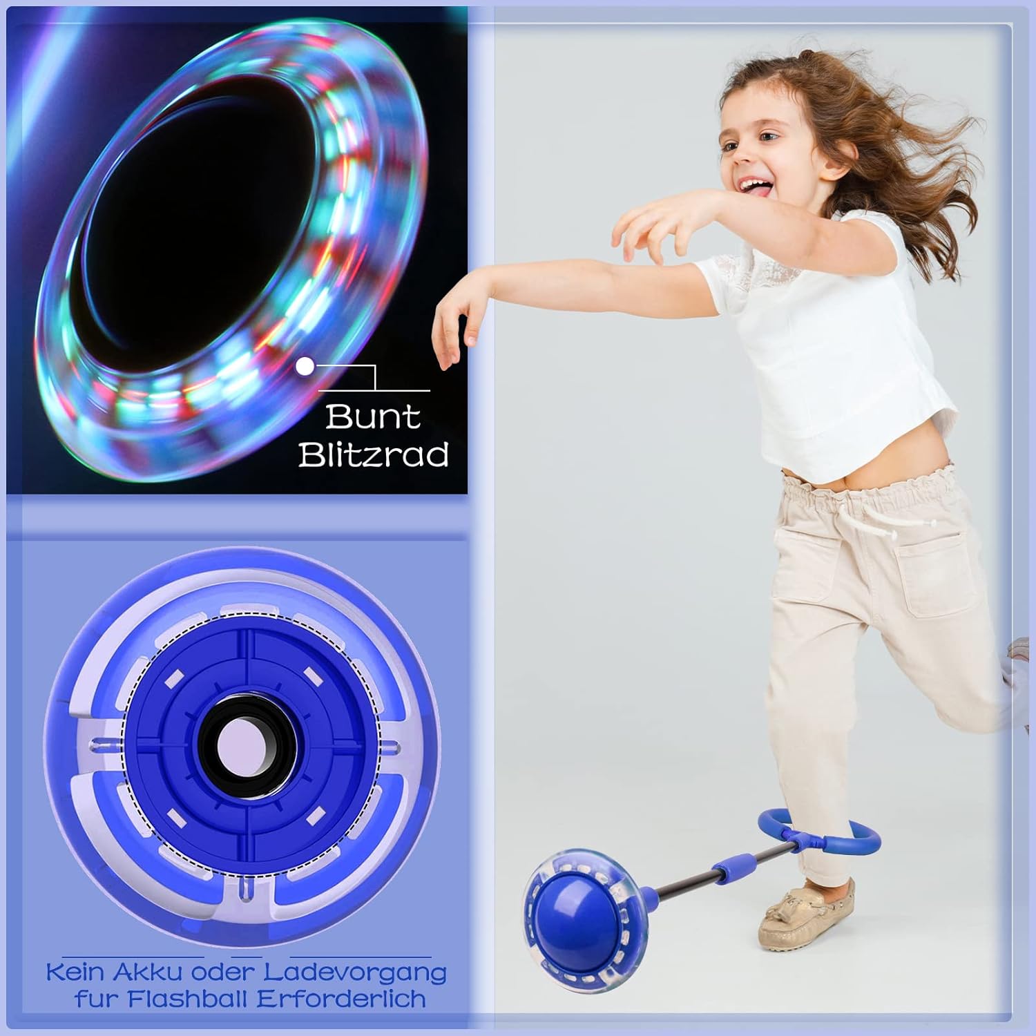 ★ Salto flash: materiale PVC + PP, lunghezza 62 cm, rosso, blu, verde, giallo, rosa. ★ Nuovo salto del fulmine: le ruote rotanti si accendono automaticamente, i colori attraenti, emettono una luce fredda e sono particolarmente accattivanti di notte. ★ Comodo da trasportare: design pieghevole, coulisse elastica integrata e tasca, facile da trasportare e riporre. Una fibbia migliorata rende più facile per diverse età mettere i piedi in cerchio. ★ Design di sicurezza: lo spesso strato di spugna è più morbido e copre l'anello della caviglia, che può proteggere la caviglia da lesioni. È sicura e divertente, facile da usare ed emozionante. È un buon regalo per i bambini per giocare. ★ Adatto per la maggior parte delle età: per bambini e adulti, la palla aiuta a migliorare la coordinazione e le capacità motorie dei bambini, bruciare l'energia in eccesso e fare un divertente allenamento aerobico con i genitori.