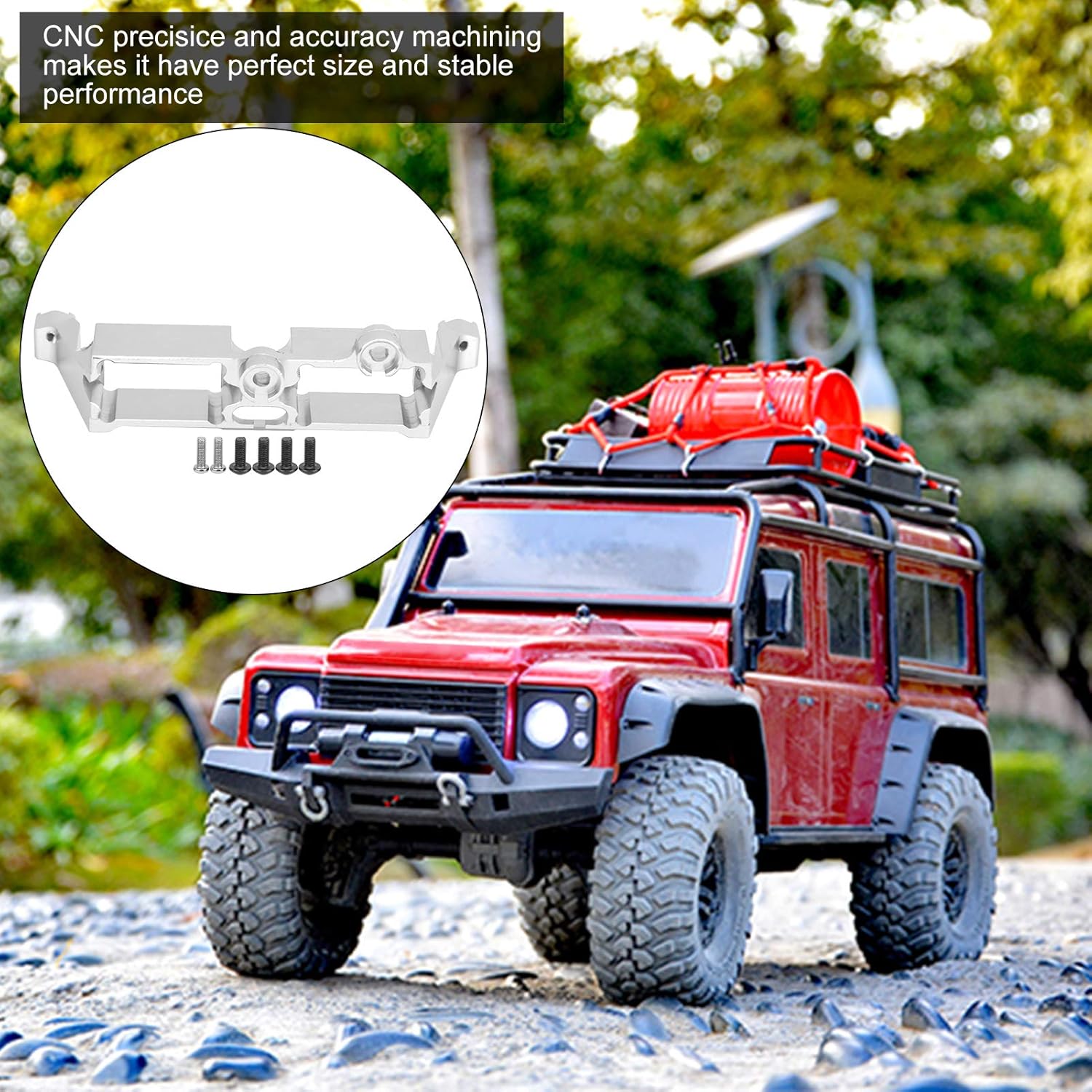 Realizzato in materiale in lega di alluminio, che lo rende resistente e non facile da deformare. I colori brillanti rendono la tua auto telecomandata più elegante e adatta al cingolato RC 1/10. La lavorazione CNC di precisione e accuratezza gli conferisce dimensioni perfette e prestazioni stabili. Con le caratteristiche di alta precisione ed elevata resistenza, risolve i problemi di resistenza e facile deformazione delle parti in plastica originali. Design preciso, copertura anodizzata più bella, facile da installare e semplice da utilizzare.