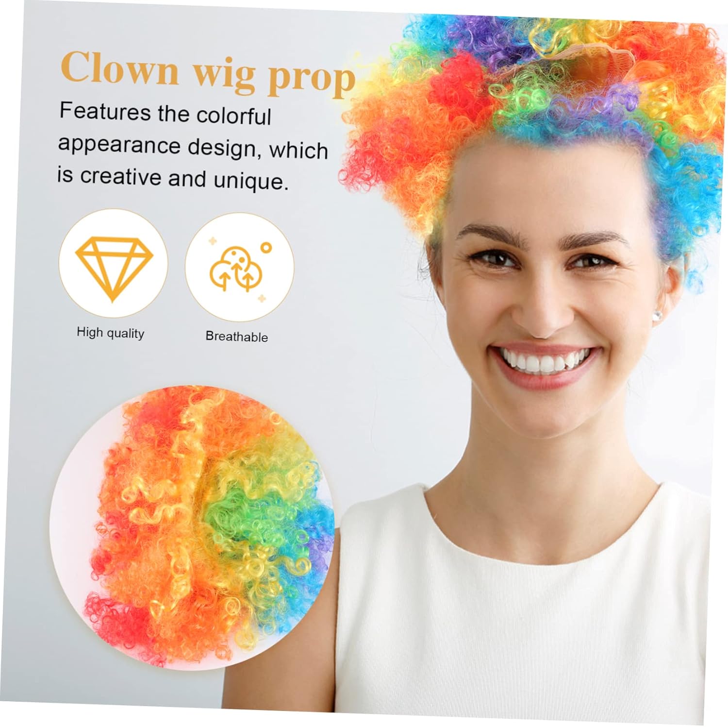 Il pacchetto include 1 parrucca da clown colorata Caratteristiche - Perfetto come copricapo di scena per Halloween, feste a tema, spettacoli teatrali, ecc. - La pregevole fattura garantisce un comfort elevato e un aspetto delicato del costume da festa. - parrucca da clown - È il migliore per la famiglia e gli amici per Halloween, Carnevale e altri tipi di copricapo da clown. Informazioni sulle merci parrucca da clown colorata L'aspetto colorato dà vita a qualsiasi costume da clown, vivido e adorabile. parrucca da clown da spettacolo L'accessorio per parrucca da clown è realizzato in materiale di qualità superiore, comodo da indossare, robusto e durevole. parrucca copricapo da clown La pregevole fattura garantisce comfort e un aspetto delicato. parrucca da clown Perfetta per Halloween, feste a tema, spettacoli teatrali, ecc. accessorio per costume da clown di carnevale È il migliore per la famiglia e gli amici ad Halloween, Carnevale e altro ancora