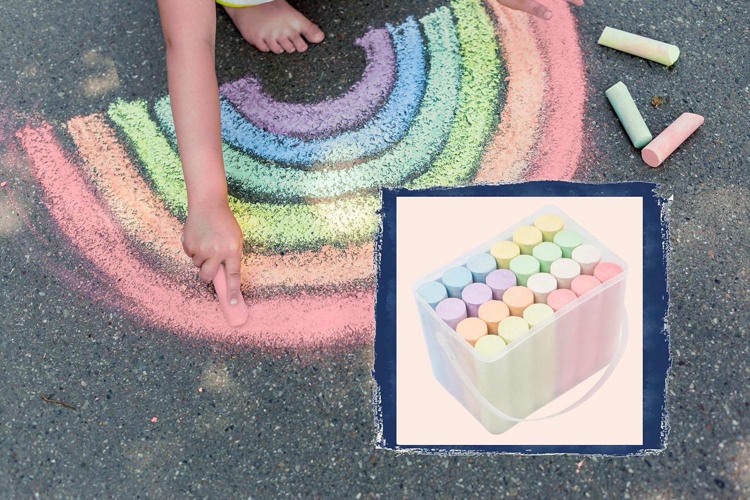 Ogni vasca di gesso include bastoncini bianchi e dai colori vivaci di gesso jumbo da marciapiede La confezione include 3 ciascuno di 8 colori; bianco, giallo, arancione, rosa scuro, verde, verde-blu, blu e viola Progettare e disegnare con il gesso da marciapiede incoraggia la creatività, il riconoscimento dei colori e lo sviluppo delle capacità motorie Questo gesso è atossico, privo di polvere e si lava via facilmente con acqua, rendendolo perfetto per marciapiedi, vialetti, parchi giochi Ogni bastoncino è lungo 10 cm e ha un diametro di 2,5 cm per una facile presa, pronto per offrire ore di arte all'aperto e divertimento nel parco giochi