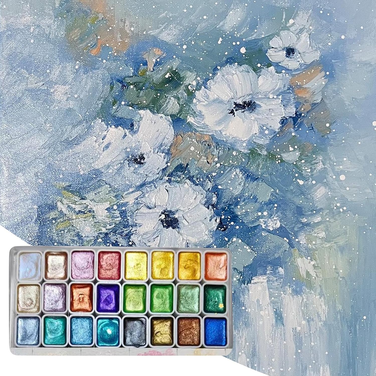 Design adatto ai viaggi: questo set di pittura ad acquerello è di piccole dimensioni, leggero e facile da trasportare, in modo da poter disegnare ovunque senza occupare molto spazio. Rende più conveniente uscire per artisti di tutti i livelli. Acquerello scintillante: realizzato attraverso un processo, il nostro set di acquerelli vanta pigmenti minerali di mica che lussuosamente, assicurando che la tua opera d'arte brilli come nessun altro. Sblocca il tuo potenziale: lascia che la tua visione artistica prenda vita con le nostre vernici ad acquerello. La sua elevata trasparenza consente di vedere ogni dettaglio sulla carta. I suoi 24 colori accattivanti tireranno fuori il meglio della tua arte, per stupire. Ampiamente usato: versatile set di pittura ad acquerello con forniture complete. Perfetto per gli appassionati di pittura, un ottimo regalo per il Ringraziamento, compleanni o qualsiasi occasione speciale. Ideale per studenti, professionisti e acquerellisti principianti. Al suo meglio: basta strofinare sul blocco di colore, immergere una piccola quantità di acqua sulla penna e iniziare a scrivere con un buon effetto colore; ideale per principianti ed esperti.