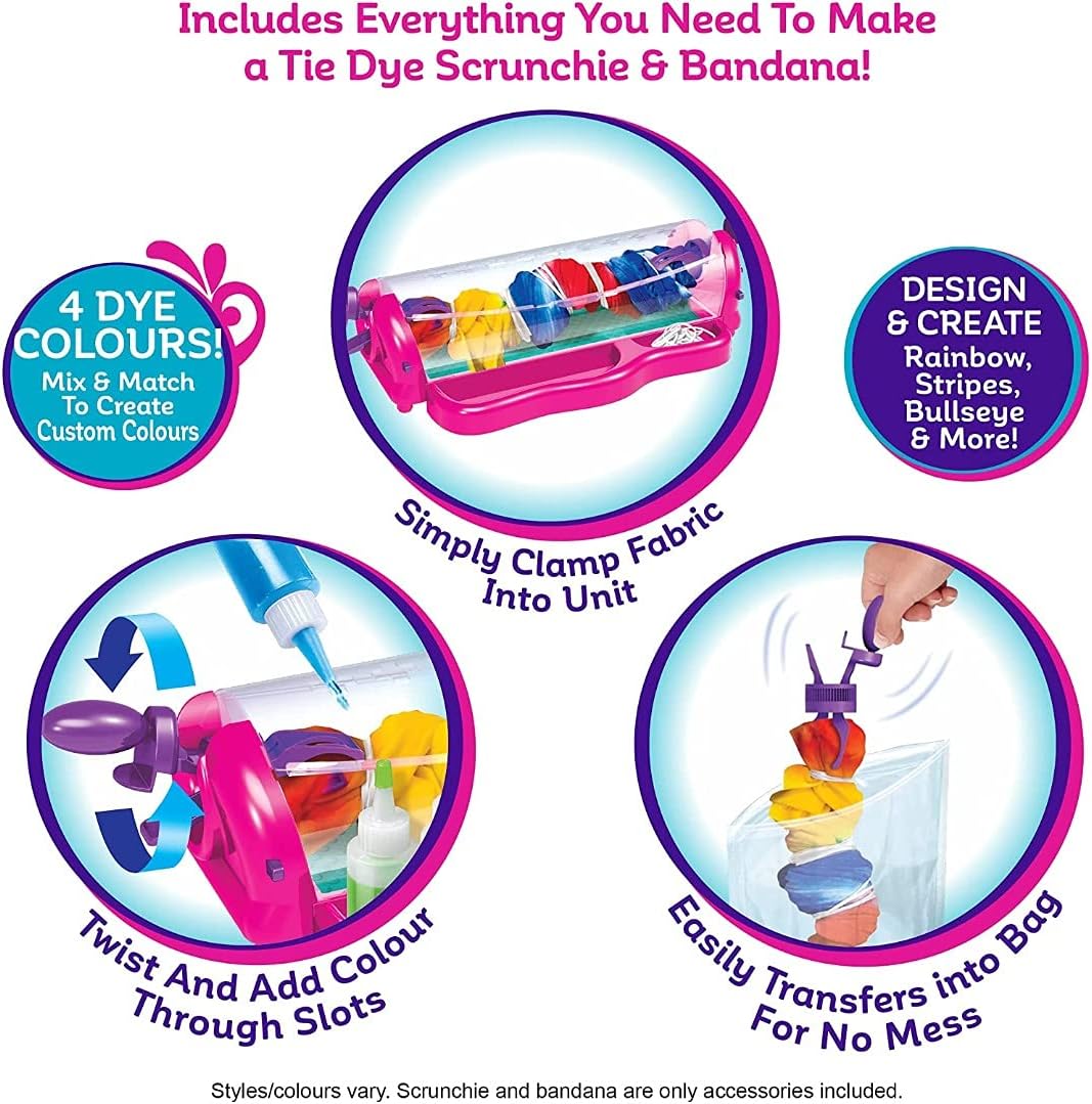 Progetta e crea mode tie dye! Band it! Twist it! Tingila! Allora indossalo! Include tutto il necessario per creare un elastico tie dye e una bandana. Progettato per meno disordine! Non sono necessarie batterie.