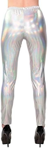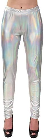 Spacige Leggings con effetto scintillante per feste a tema anni '80 e '90 Colore: argento metallizzato cangiante Altezza vita normale Disponibile in due misure Spedizione dalla Germania