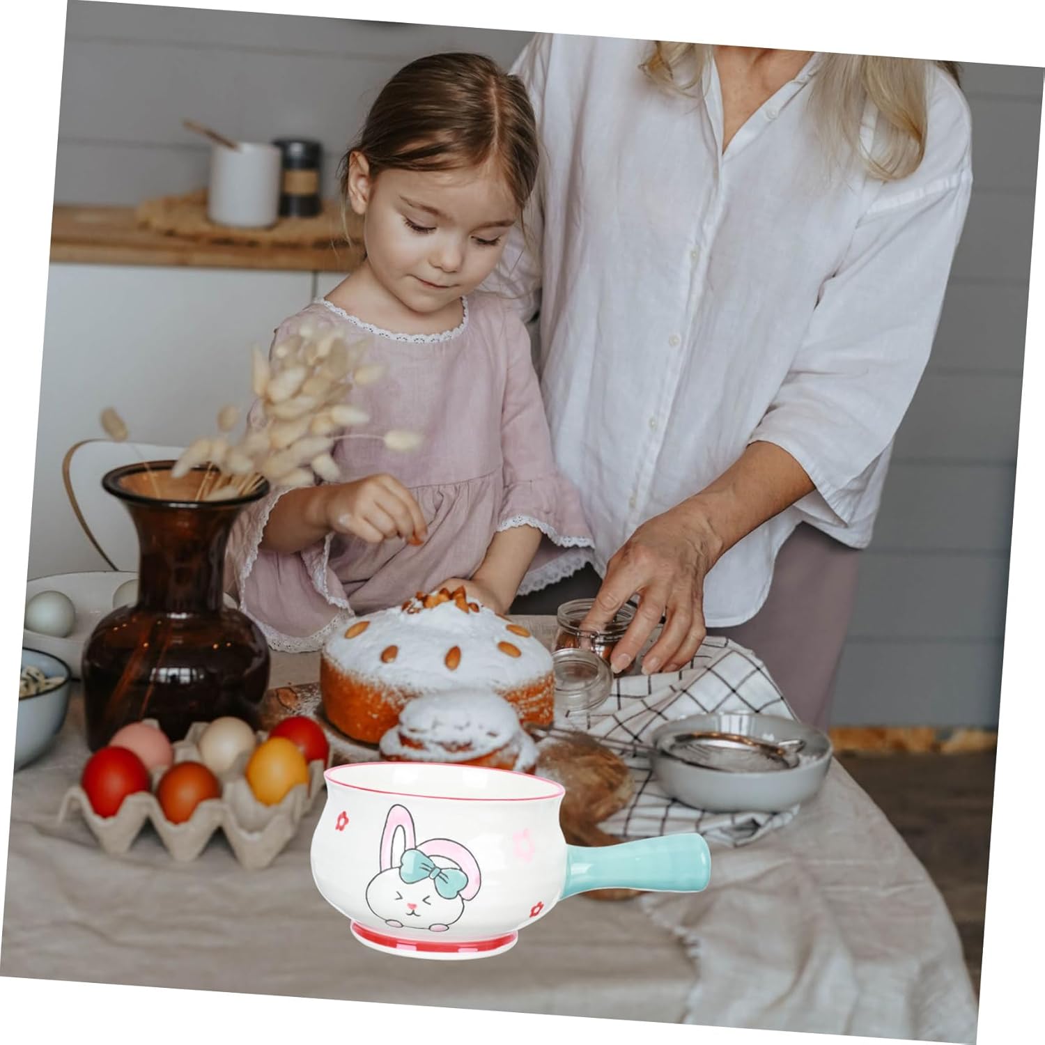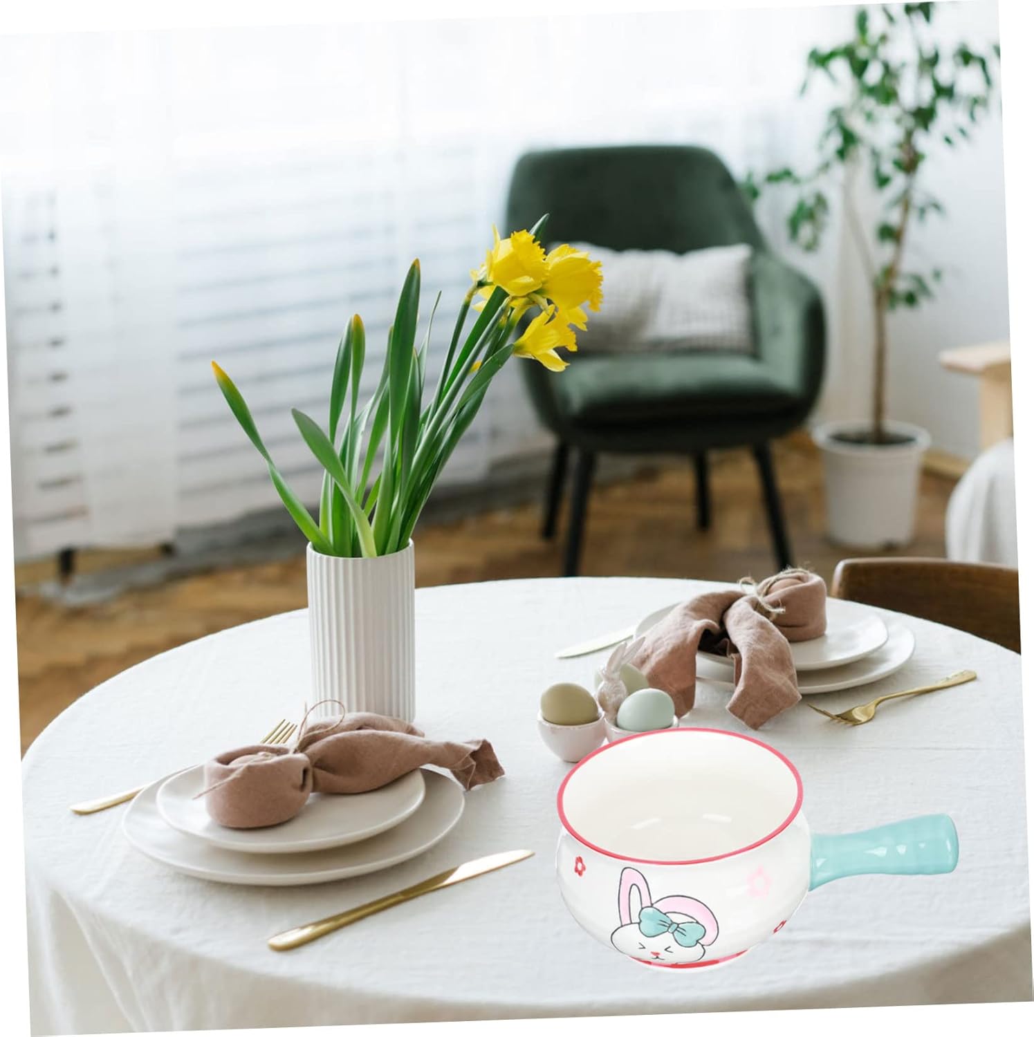 Stoviglie per la festa di Pasqua - Il design del manico rende la ciotola in ceramica comoda da usare e facile da impugnare. Contenitore per alimenti - Bellissimo motivo a coniglietto e pregevole fattura, la sua popolarità e utilità, Ciotola per frutta con manico Insalatiera con manico - Adatta per microonde, forno e lavastoviglie, offre molta comodità, Ciotola con manico Ciotola decorativa - Facile da pulire e mantiene il cibo fresco, lo stile creativo è adatto a te, Contenitore per cibo Insalatiera - Realizzato in materiale con lavorazione squisita per una maggiore durata, Stoviglie di Pasqua