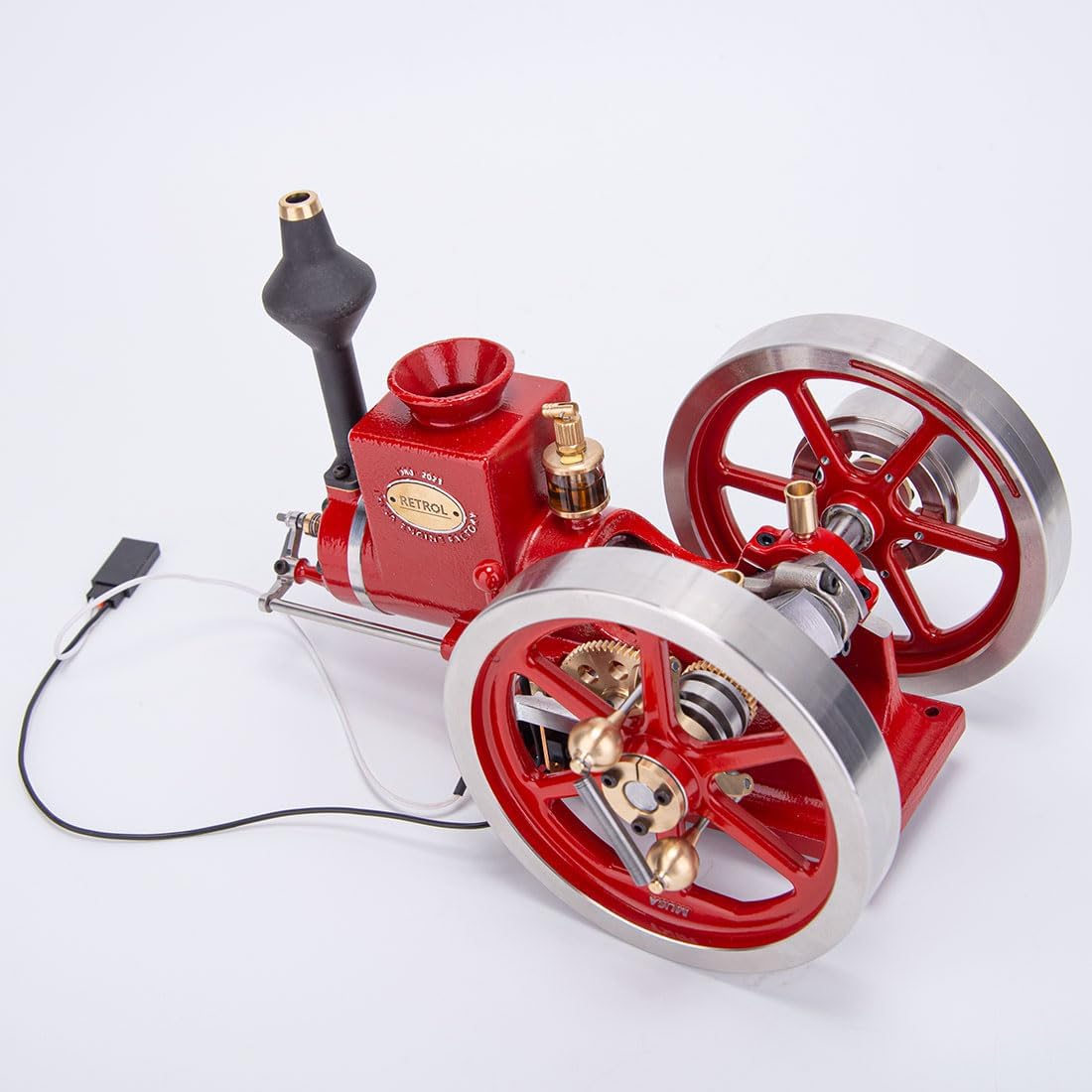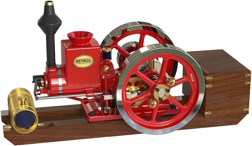 Squisito processo di fabbricazione: realizzato con materiali metallici di alta qualità per garantire qualità e precisione. Ogni componente è meticolosamente elaborato e integrato, dando vita a un modello estremamente realistico e accattivante. Dettagli eleganti: Questo modello ben realizzato è dipinto di rosso per rappresentare l'aspetto di un'antica macchina agricola, con suono e movimento genuini che trasmettono un fascino retrò e classico, creando un'impressione duratura sullo spettatore. Facile da visualizzare e da usare: dotato di un funzionamento semplice e di facile comprensione e metodo di visualizzazione, che consente di controllare facilmente il suo funzionamento avviando e arrestando manualmente il motore o di visualizzare in qualsiasi luogo, come una scrivania o una vetrina. Principio realistico: perfetto come un ottimo strumento per l'educazione e imparare a comprendere il principio di funzionamento e i principi meccanici del motore Hit-and-Miss. Puoi osservarlo accendere il carburante e produrre un suono e un movimento unici all'avvio. Note (non include gli accessori): il motore non include candela, accenditore CDI, serbatoio del carburante, tubo del carburante, base, scatola di legno e altri accessori, si prega di acquistare in base alle proprie esigenze.