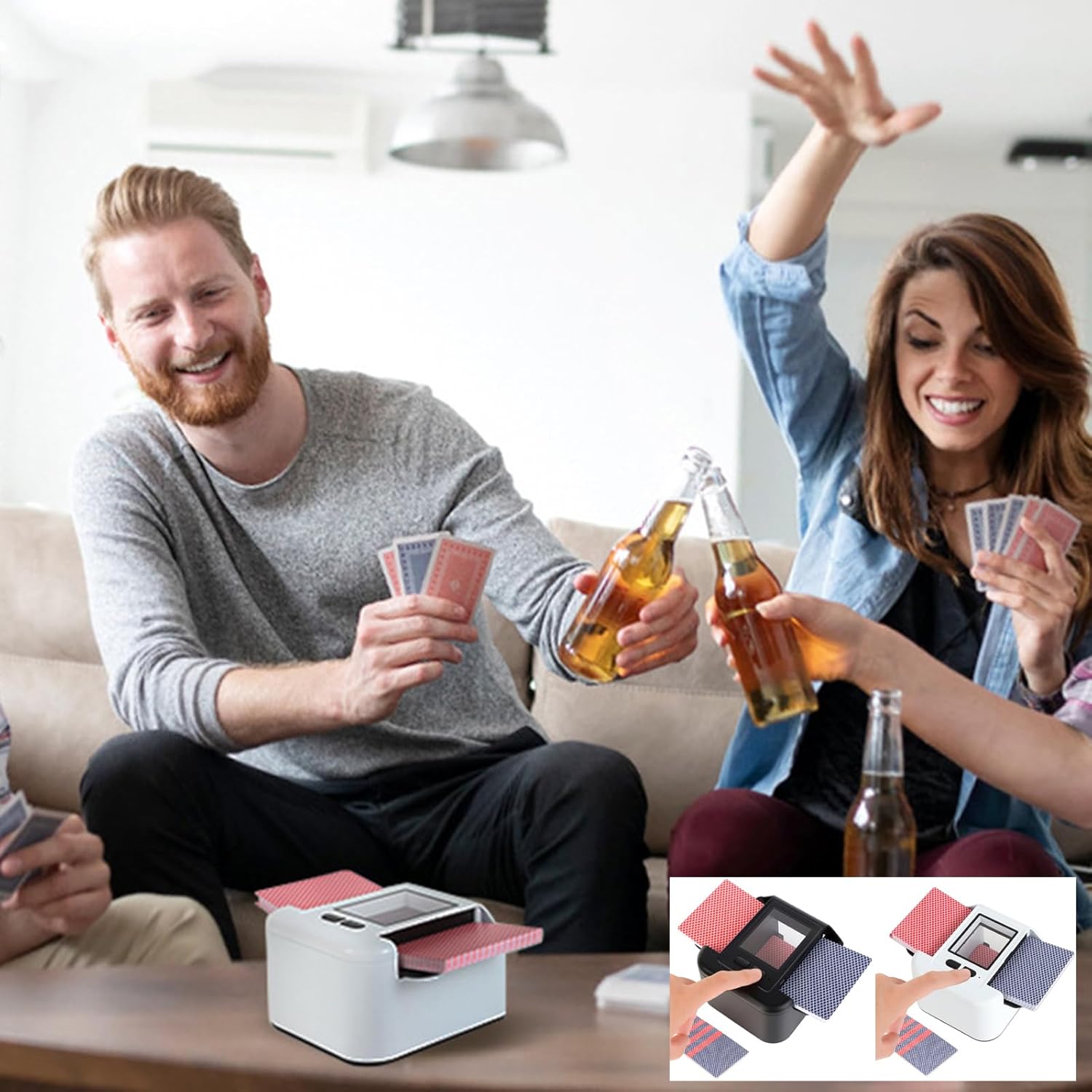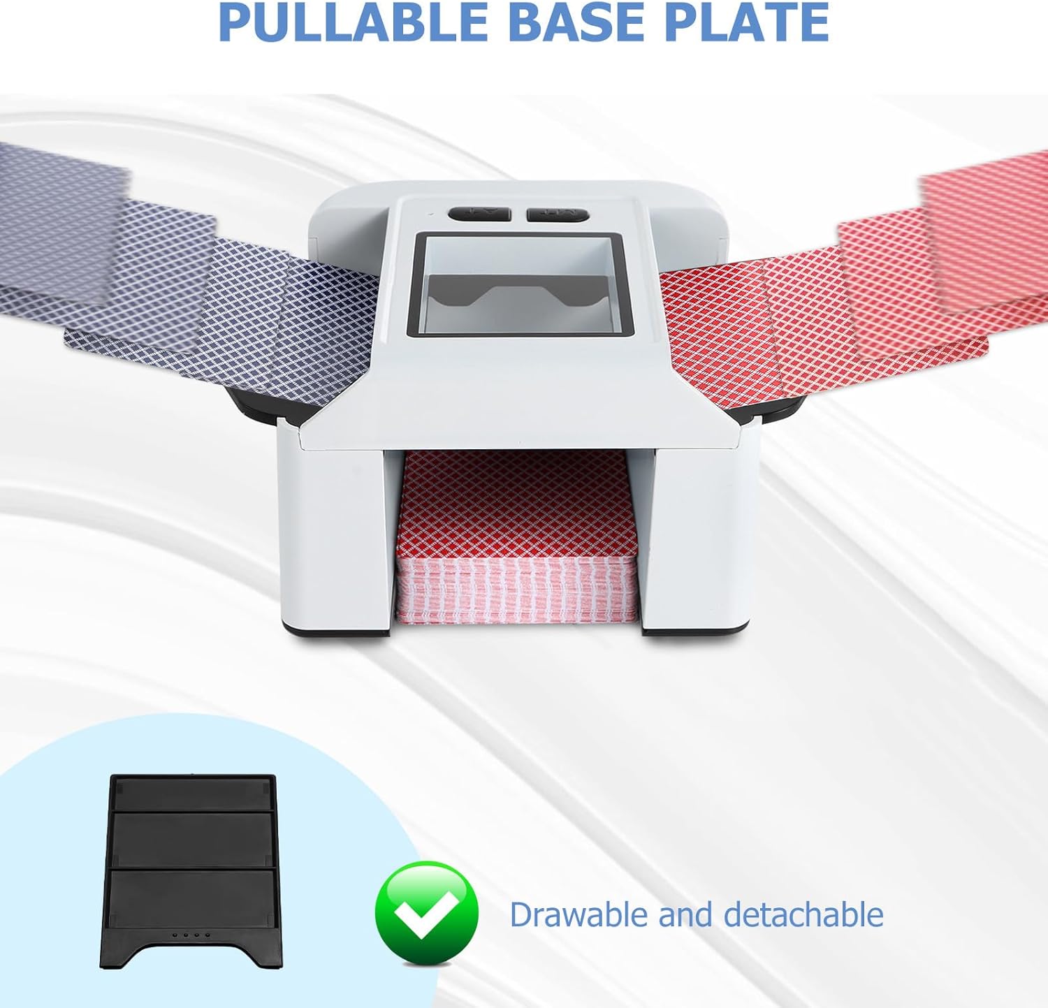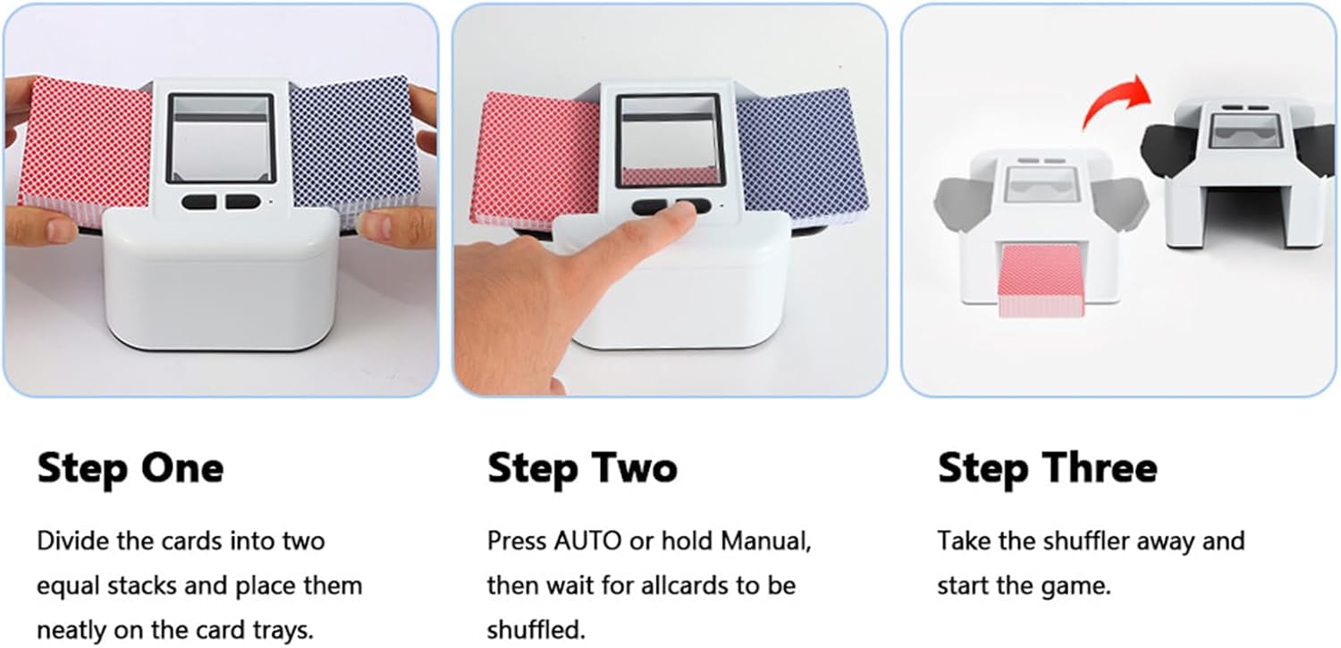 Shuffling senza sforzo con l'operazione One-Touch: prova la massima comodità con l'operazione one-touch facile da usare. Basta premere il pulsante e lo shuffler rileverà e mescolerà automaticamente le tue carte, garantendo ogni volta uno shuffle fluido e uniforme. Per una maggiore flessibilità, una modalità manuale ti dà un maggiore controllo sul processo. Compatibilità universale delle dimensioni delle carte: progettata per adattarsi a un'ampia gamma di dimensioni delle carte, tra cui poker standard e ponti, con lati regolabili che consentono una perfetta vestibilità. Capace di mescolare fino a due ponti contemporaneamente con un'efficienza impeccabile, senza garantire inceppamenti o interruzioni. Potenza ricaricabile a lunga durata: dotata di una potente batteria ricaricabile da 2000mAh, può mescolare fino a 1000 ponti per carica. La porta di ricarica USB-C fornisce una ricarica rapida e affidabile, rendendola compatibile con la maggior parte dei dispositivi per una ricarica senza problemi. Compatto e adatto ai viaggi: con un design elegante e salvaspazio, che lo rende facile da riporre e affrontare in movimento. Che tu stia viaggiando o ospitando una serata di gioco, è il compagno portatile perfetto per tutti i tuoi giochi di carte. Prestazioni ultra silenziose per un gioco pacifico: dotato di un motore aggiornato che riduce i livelli di rumore, questo shuffler di carte garantisce un ambiente di gioco tranquillo e tranquillo, permettendoti di concentrarti sul divertimento senza suoni dirompenti. Perfetto per ambienti tranquilli, feste a casa o tornei.