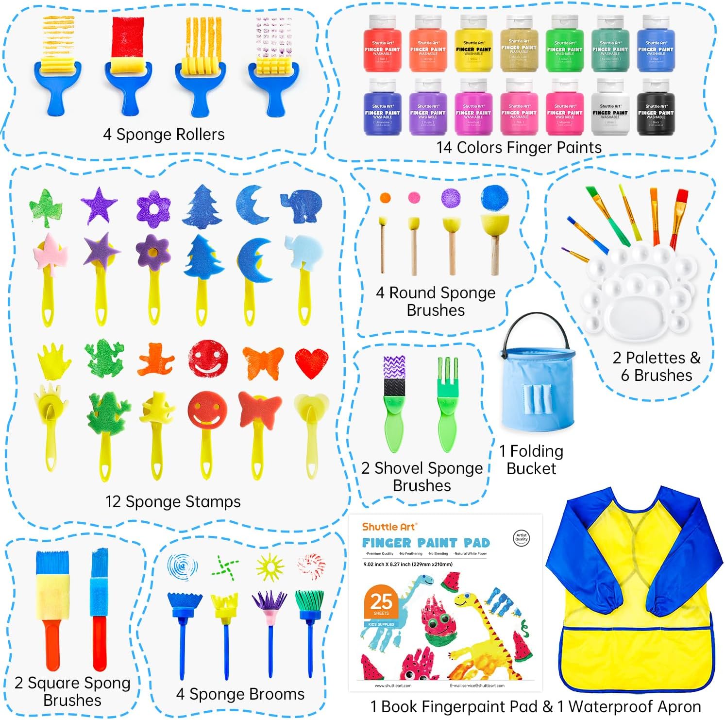 SET COMPLETO DI PITTURE PER BAMBINI: Shuttle Art 46 pack set di colori a dita contiene 14 colori lavabili per le dita in bottiglie (60ml ciascuno), tra cui colori classici, neon e glitterati, insieme a 1 libro disegno per le dita, 1 tavolozza, 6 pennelli da pittura, 12 timbri di spugna, 4 spugne a rullo, 6 pale e pennelli di spugna, 1 grembiule impermeabile, un set completo di pittura per bambini e bimbi piccoli. PITTURA MULTIUSO PER BAMBINI: vernice ricca e cremosa con colori vivaci, è perfetta per la pittura a dita dei bambini, spugna e dipinto poster, così come artigianato. Possono essere applicati su varie superfici, come carta, vetro, legno, plastica, ceramica e altro ancora. La vernice a base d'acqua può essere facilmente lavata via, materiali d'arte ideali per bambini per le attività scolastiche, l'apprendimento precoce e l'educazione. STRUMENTI VERSATILI DI PITTURA: Abbiamo preparato più di 30 pezzi di strumenti e accessori da pittura in questo set, come libro di pittura per dita e pennelli di vernice che i bambini possono iniziare a colorare non appena lo ottengono. Altri strumenti di pittura assortiti come spazzole di spugna e grembiule, spugne a rullo porteranno ai bambini più idee per creare e divertirsi. Possono essere immersi nella pittura tutto il giorno ! LAVABILE E SICURO PER BAMBINI: I nostri colori a dita per bambini è a base d’acqua che può essere facilmente lavata via dalla pelle e da altre superfici come scrivanie, vetro e tessuti. Inoltre questo set fornisce un grembiule impermeabile che può mantenere i vestiti puliti e ordinati. Conforme alla norma U.S.ASTMD-4236 e EN71-3, non tossico e senza acidi, sicuro per i bambini. SERVIZIO GARANTITO: la vostra soddisfazione è la nostra priorità massima, vi prego di restare certi nel acquistare i nostri prodotti. Se non siete soddisfatti per i nostri prodotti o avete domande da chiedere, non esitate a contattarci in qualsiasi momento.