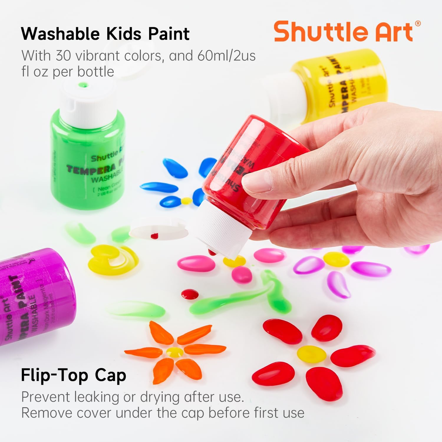 30 bellissimi colori: il set di vernici a tempera è composto da 11 bottiglie di colori standard, 8 bottiglie di glitter, 6 bottiglie di neon e 5 bottiglie di metallo. Colori brillanti e ricchi sono fluidi.La vernice è brillante e di alta qualità. Lavabile e senza residui: le vernici a temperatura sono abbastanza facili da pulire, in modo da poter lasciare che i bambini si liberino completamente durante il periodo di artigianato. Dopo aver dipinto o scarabocchiato, lavarle con un po' di sapone e se ne va in pochissimo tempo. Divertente e sicuro da creare: le bottiglie a bocca larga sono facili da usare per le dita e spazzolare per ottenere senza sprechi. Le vernici senza acidi, atossiche ed ecologiche sono divertenti per le impronte digitali e l'impronta artigianale. Questo è un prodotto fantastico per la creazione manuale di arte. Ampia applicazione: le vernici a tempera Shuttle Art sono ideali per progetti di artigianato e poster su quasi tutte le superfici. È perfetto da usare in aula d'arte, attività di pittura di gruppo, progetti, feste e molto altro ancora. Garanzia di soddisfazione: conforme agli Stati Uniti ASTM D-4236 e EU EN71. Sono sicuri, non hanno un odore chimico per loro, davvero adatto per i bambini. Garanzia di soddisfazione al 100% e servizio perfetto. Agisci e ottieni il tuo ora!