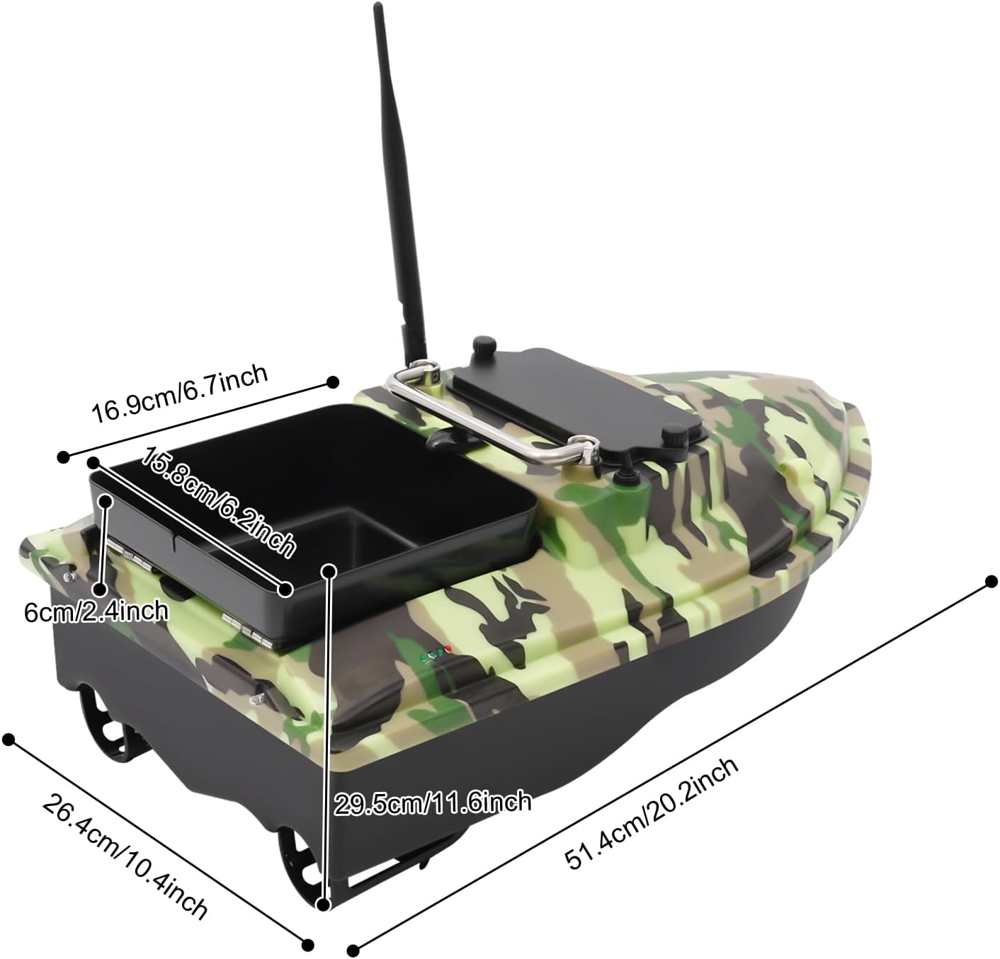 Durevole: il prodotto è realizzato in ABS e acciaio inossidabile con un processo di trasferimento dell'acqua, con robusto, elevata resistenza all'abrasione, anticorrosione e antiruggine. Doppio motore: dotato di una configurazione bimotore, la funzione bimotore consente correzioni efficaci in caso di avidità durante l'esercizio della nave. Ampia distanza di trasmissione: l'antenna della nave è in grado di ricevere segnali stabilmente indipendentemente dalle interferenze meteorologiche e ambientali e può raggiungere distanze di controllo remoto fino a 500M/1640,4 piedi, il che amplia notevolmente il campo di applicazione. Facile da usare: il funzionamento con il telecomando è più conveniente. Tutto quello che devi fare è accendere il pulsante Cruise per spostare la barca in linea retta a velocità costante. Puoi anche regolare la direzione in avanti della barca con il joystick. Facile da trasportare e riporre: il prodotto è leggero (12,76 lbs) e piccolo (20,2 x 10,4 x 11,6 pollici), quindi è facile da trasportare quando si è in viaggio. Non occuperà troppo spazio quando lo si conserva.