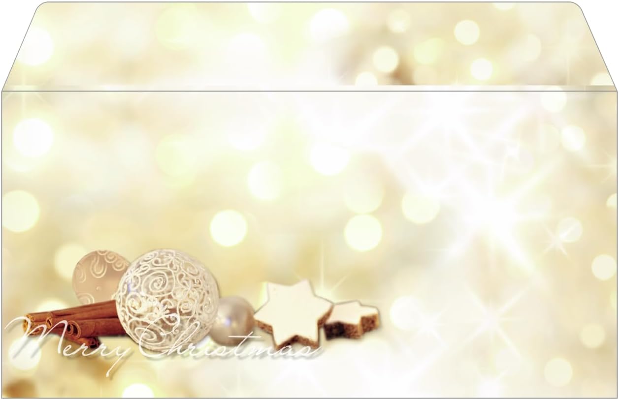 25 Buste da lettera natale con soggetto in tenui colori Carta a tema coordinata disponibile al Cod; art;: DP926 Qualità made in Germany: articolo studiato e stampato in Germania per tutte le stampanti inkjet e laser Formato: DL (110x220 mm), gommata