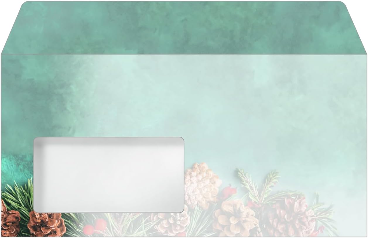 Per auguri di Natale speciali, da stampare e compilare individualmente Buste a tema natalizio di gran stile "Green Christmas" (motivo: rami di abete in verde/marrone/rosso), formato DL, 50 pezzo con lembo gommato Prodotto in UE Design suggestivo, piacevole e moderno Certificata FSC: carta d’alta qualità amica dell’ambiente, proveniente da fonti responsabili; Pratica finestra: non occorrono più etichette per indirizzi né ulteriori indicazioni sulla busta