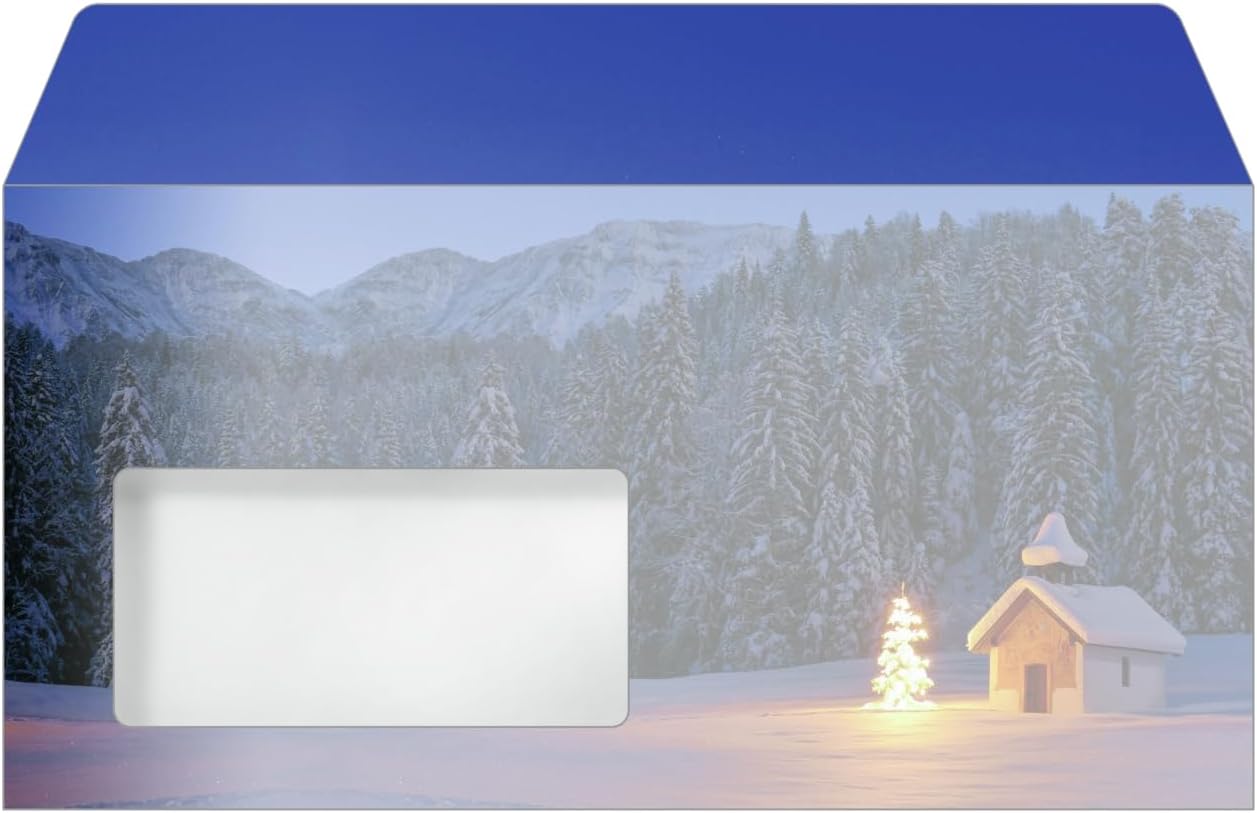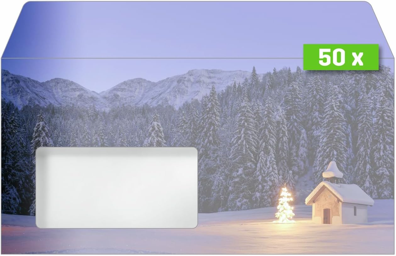 Per auguri di Natale speciali, da stampare e compilare individualmente Buste a tema natalizio di gran stile "Christmas Chapel" (motivo: foresta invernale in blu), formato DL, 50 pezzo con lembo gommato Prodotto in UE Design suggestivo, piacevole e moderno Certificata FSC: carta d’alta qualità amica dell’ambiente, proveniente da fonti responsabili; Pratica finestra: non occorrono più etichette per indirizzi né ulteriori indicazioni sulla busta