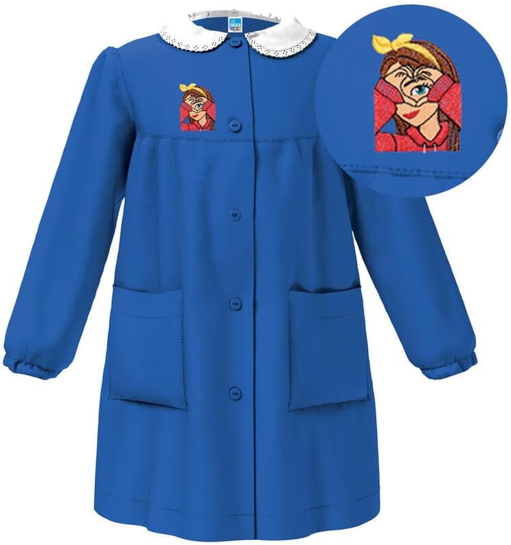 Questo grembiule scolastico Siggi Happy School è l'emblema dell'eleganza e della praticità per le bambine. Realizzato in tessuto misto di alta qualità (65% poliestere e 35% cotone), offre resistenza e comfort durante tutte le attività scolastiche. Il design classico in blu vivace (bluette) è impreziosito da un raffinato colletto bianco con decorazioni in pizzo e un delicato ricamo sul petto. La chiusura frontale con bottoni e le due ampie tasche lo rendono funzionale e pratico. Le maniche lunghe con polsini elasticizzati garantiscono comfort e libertà di movimento. Questo grembiule assicura una copertura ottimale. La manutenzione è semplice: lavabile in lavatrice e stirabile a bassa temperatura. Prodotto in Italia da Siggi Group SpA, questo grembiule rappresenta la perfetta fusione tra tradizione scolastica e funzionalità moderna.