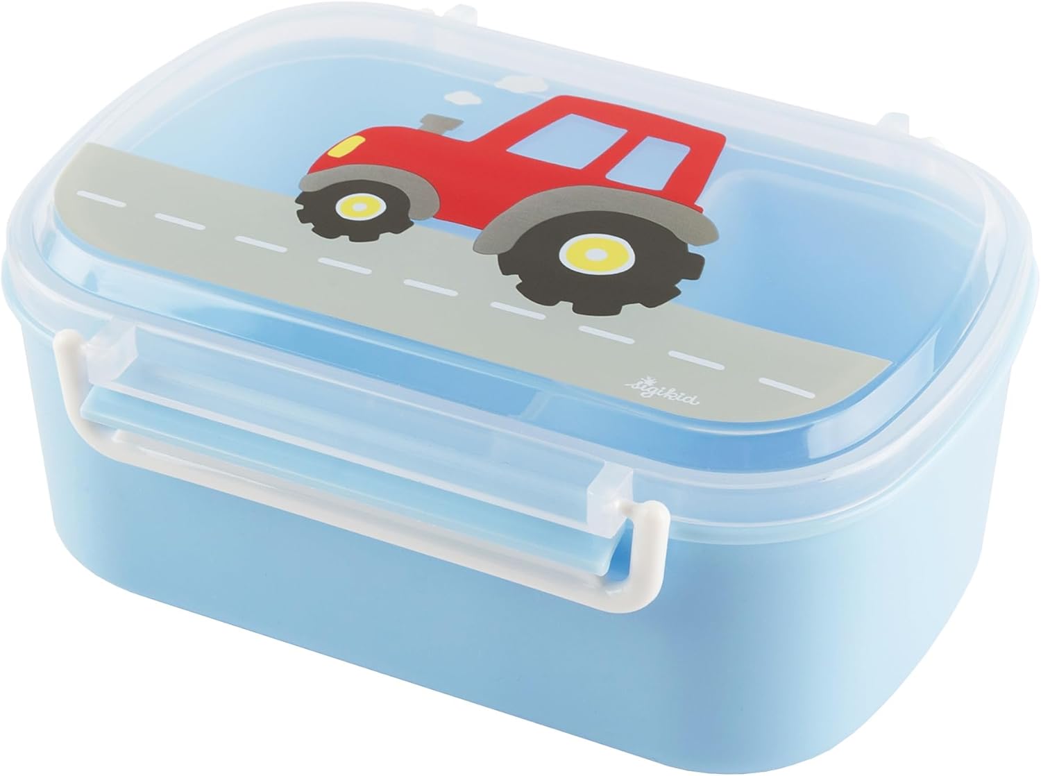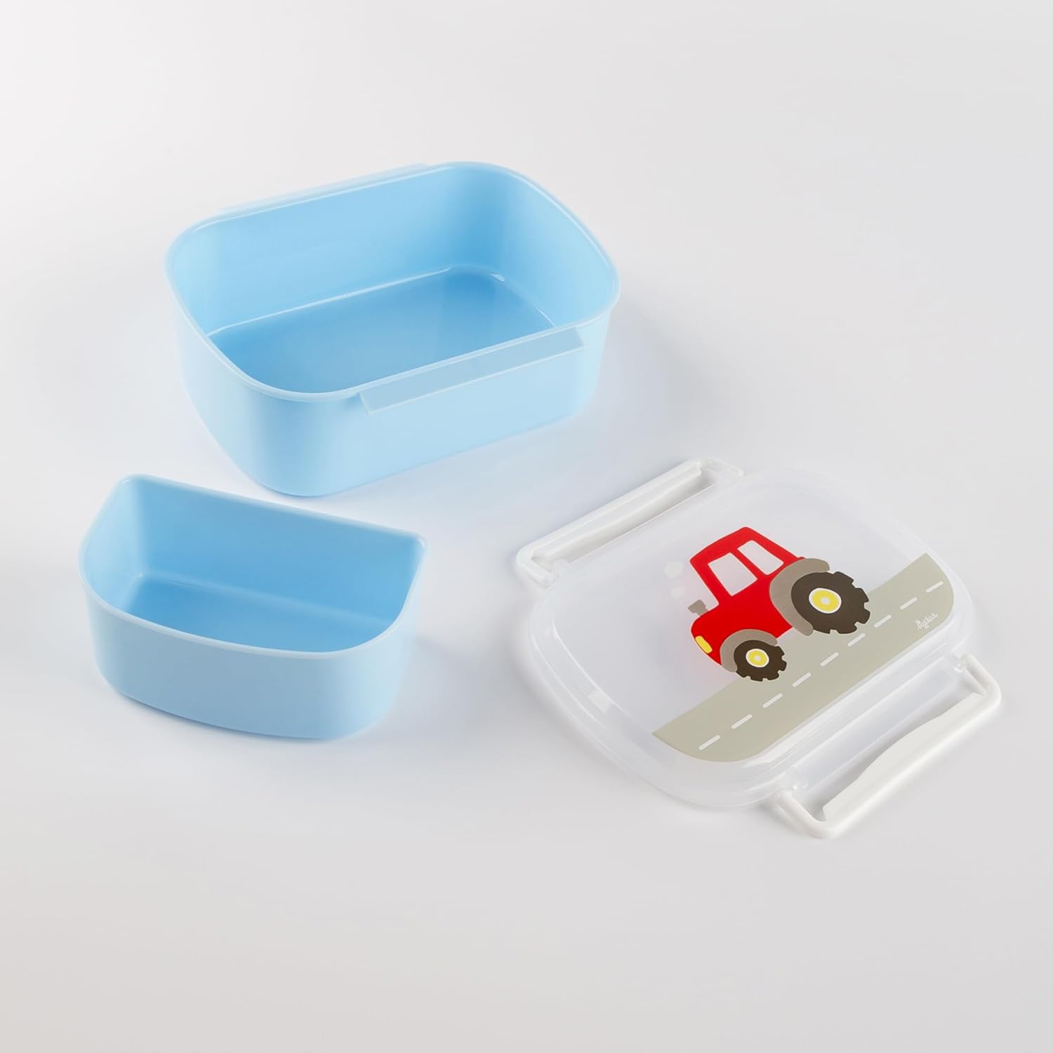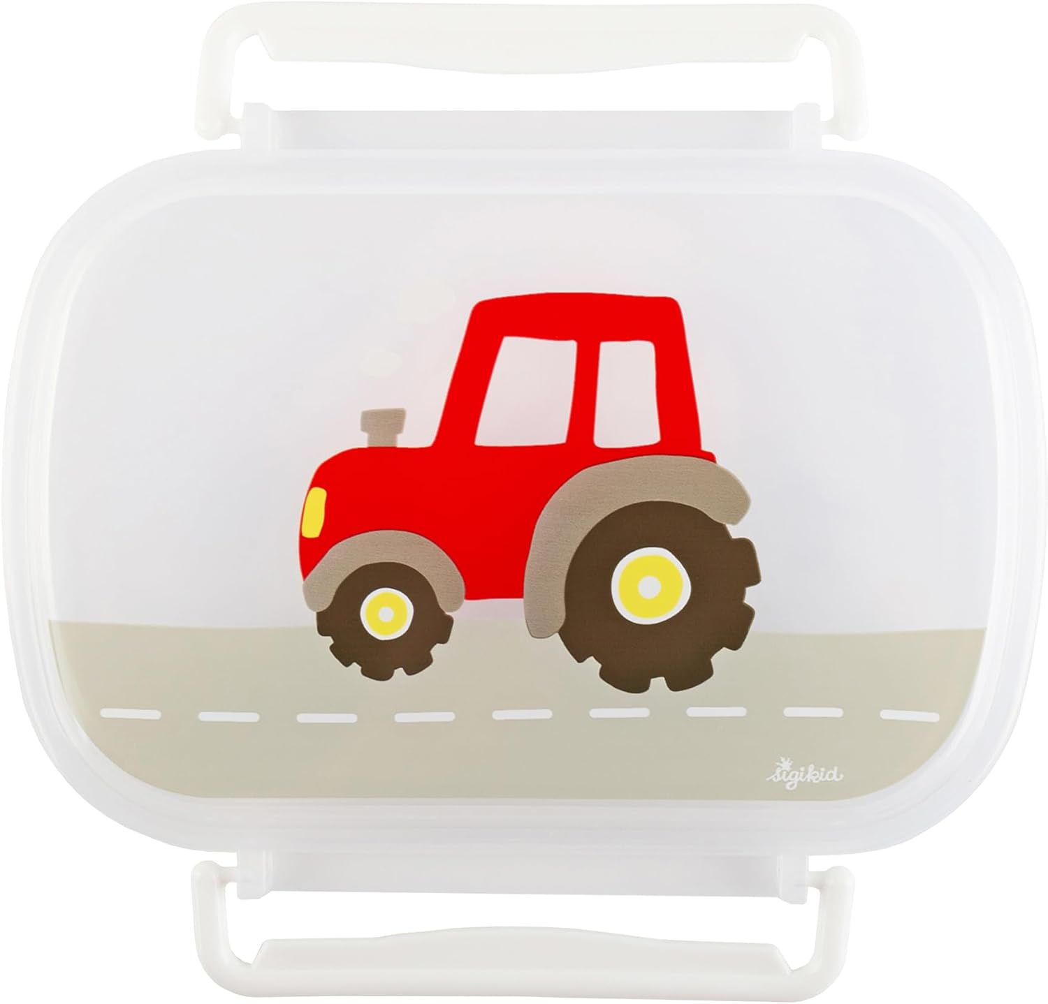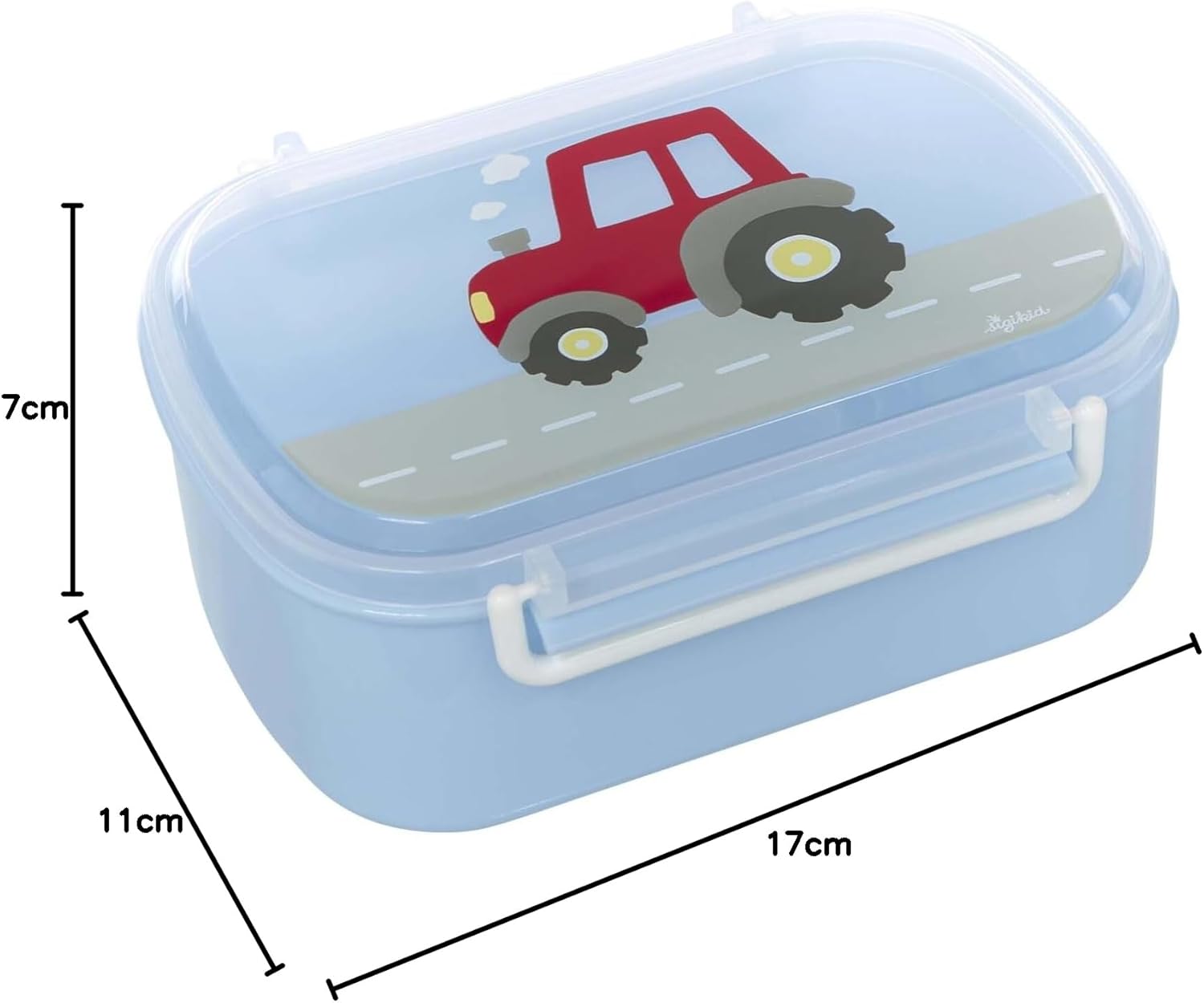 Pratico contenitore per il pranzo e la merenda con grazioso motivo raffigurante un trattore, ideale per la merenda a scuola, all'asilo o durante una gita con la famiglia. Chiusura ermetica grazie alle robuste chiusure a leva, conservazione separata di frutta o verdura grazie al vassoio per alimenti crudi rimovibile. Contenitore di alta qualità in polipropilene (PP), resistente al calore e agli acidi, senza plastificanti, senza BPA. Indicazioni per il lavaggio: contenitore e inserto lavabili in lavastoviglie, coperchio con motivo lavabile a mano Contenuto della confezione: 1 contenitore per il pranzo con trattore, colore: blu/rosso. Materiale esterno: 100% polipropilene. Età consigliata: 2-8 anni. Dimensioni (lunghezza x larghezza x altezza): 17 x 11 x 7 cm. Codice articolo: 25200.