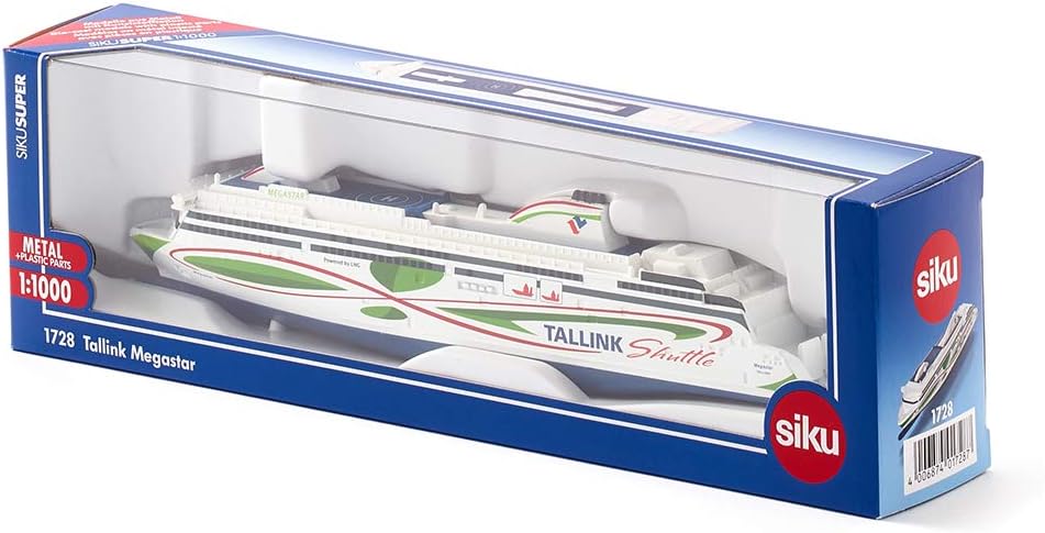 Modellino dettagliato di un traghetto Tallink Megastar per gioco e collezionismo, Per piccoli e grandi fan di traghetti Design stabile e robusto grazie alla carrozzeria in metallo, Non galleggiante Regalo perfetto per festività o compleanni, ma anche come elemento ornamentale Perfetto da portare con sé in viaggio, Divertimento assicurato grazie alle innumerevoli combinazioni di gioco possibili all'interno dei vari mondi siku Contenuto: 1 siku 1728, Traghetto Tallink Megastar, Materiale: Metallo/Plastica, Scala 1:1000, Dimensioni: 20,8 x 3,5 x 6,5 cm, Peso: 0,196 kg, Colore: Bianco/Blu/Verde, Linea: SIKU Super