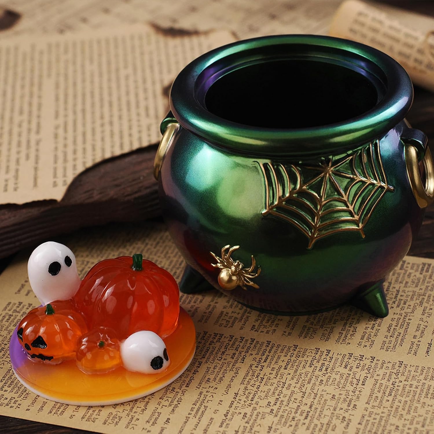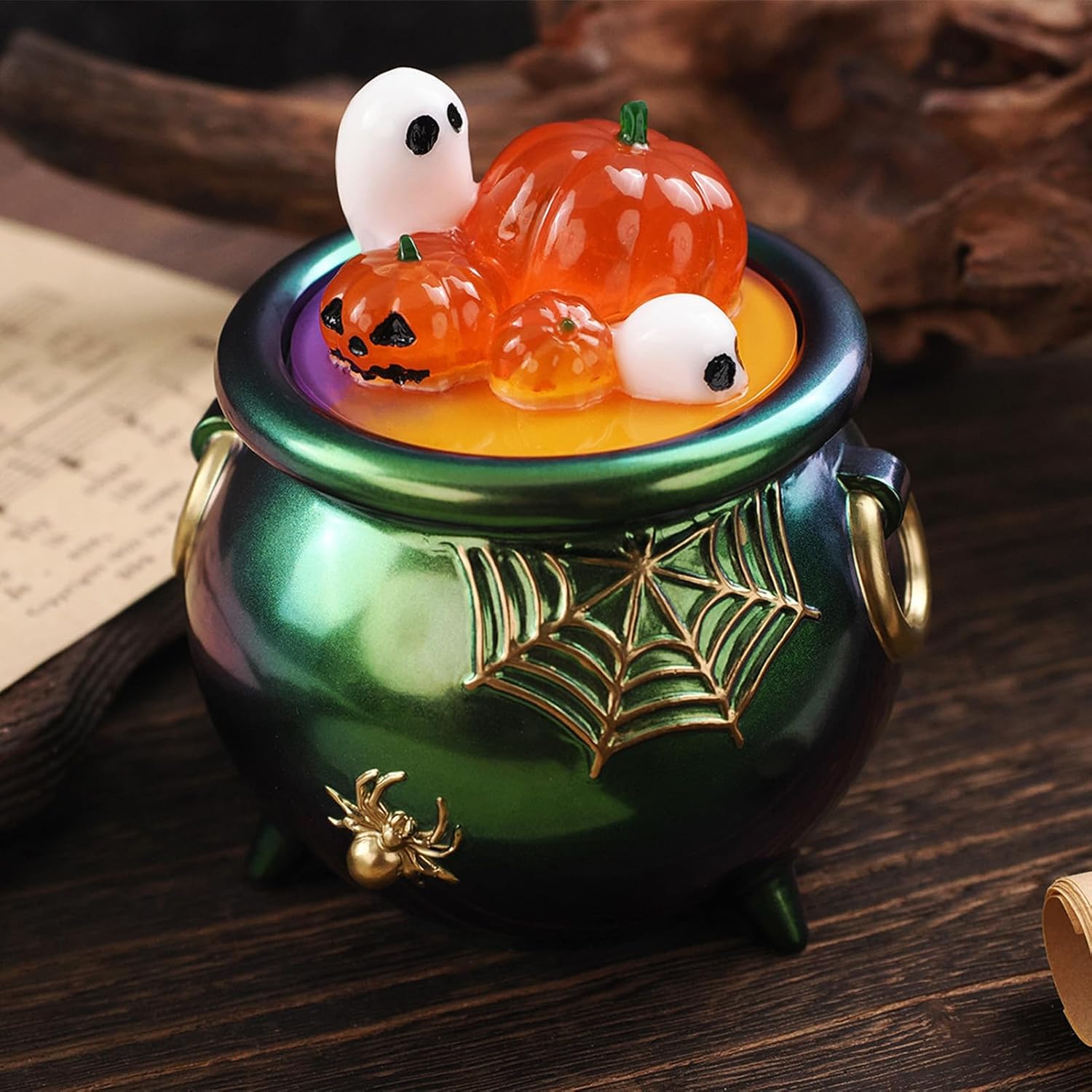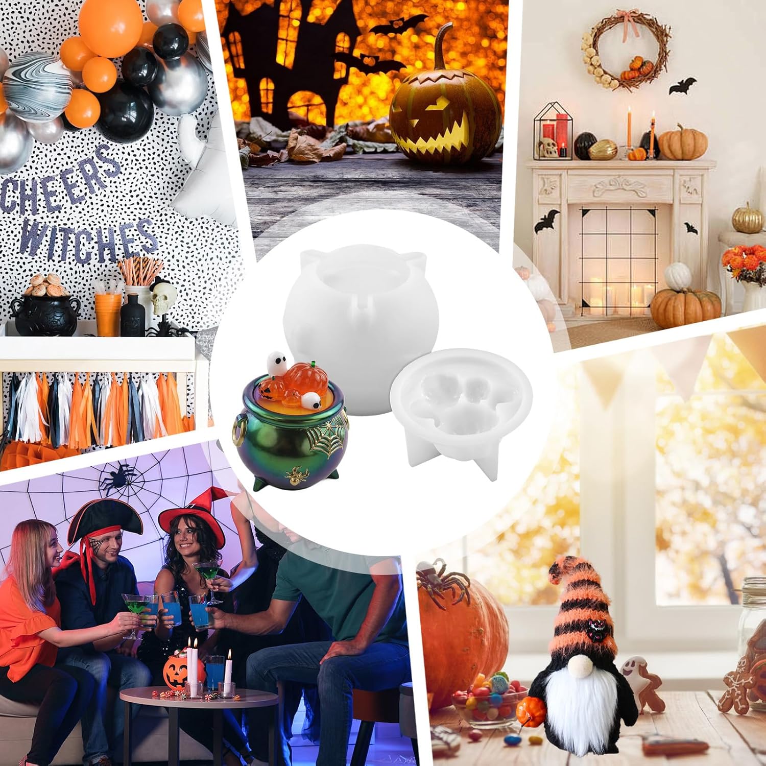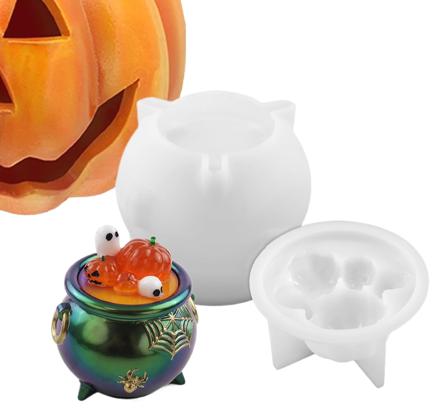Smooth Texture Mold: Designed with dependable soft and flexible silicone, this mold provides a smooth texture and easy release without damag e, supporting repeated use for tidy crafting of seasonal decorations Adaptable Material Use: suitable for resin, cement, and plaster, providing versatile crafting uses while unlocking more opportunities for creative e xpression No Skill Required Design: Enable enjoyable crafting experiences effortlessly with this accessible Halloween silicone mold, requiring non previous knowledge yet providing a satisfying way to get involved in festive-themed activities Festive Seasonal Touch: Features a Halloween cauldron design that adds spooky charm, creating a festive and decorative look suitable for seas onal home accents Craft Keepsake-Quality Art: Improve your silicone mold crafts with dried flowers, gold leaves, and dyes, achieving visually stunning results while designing keepsake-quality art with creative combinations