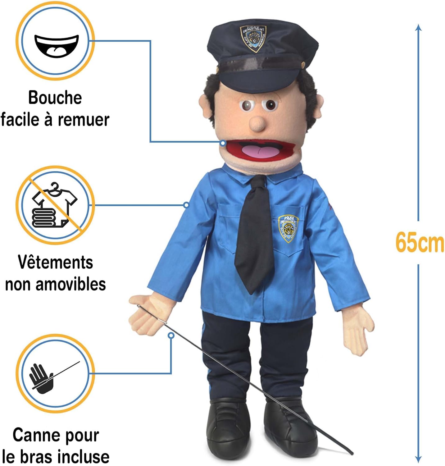 Burattino ventriloquo di alta qualità realizzato da Silly Puppets. Bocca facile da muovere. Ingresso manuale dal retro del burattino. Include 1 asta di controllo del braccio che può essere agganciata a entrambe le mani per il movimento. Altezza: circa 65 cm. Peso leggero: ca. 500 g. La sua uniforme e le scarpe dal design accattivante non sono rimovibili.