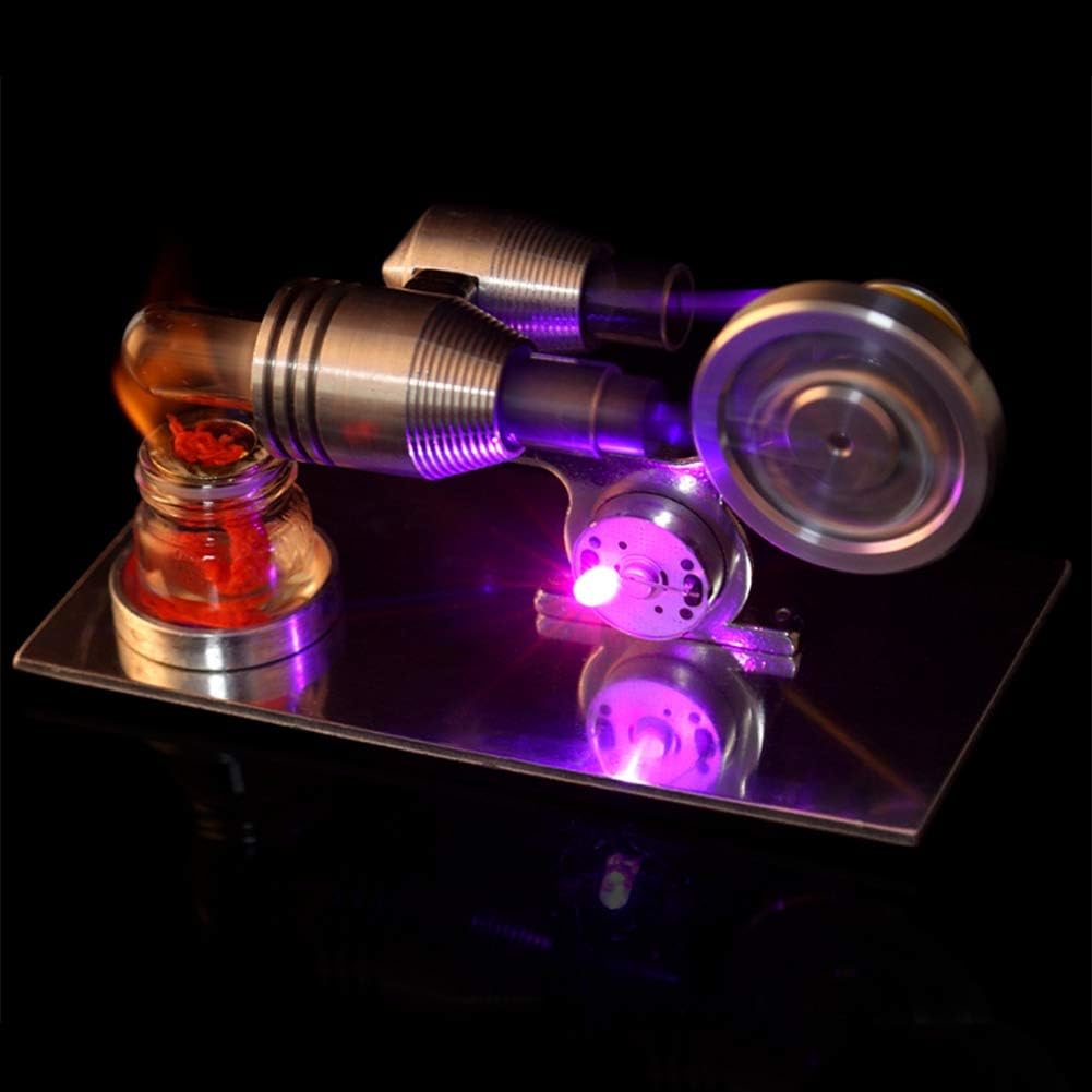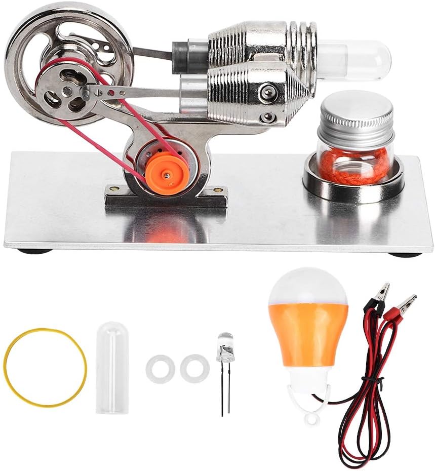 Attraverso operazioni pratiche, puoi osservare l'intero processo di funzionamento del motore Stirling, una comprensione più intuitiva dei principi Stirling e approfondire il tuo interesse per la fisica. Durante il funzionamento, posizionare il modello del motore Stirling in posizione orizzontale (meglio posizionato sul vetro piano), iniettare alcol nella lampada ad alcool, garantire la sicurezza e accendere la lampada ad alcool. Selezione di materiali di alta qualità, il corpo è realizzato in lega di zinco e la piastra inferiore è in lega di alluminio. Inoltre, la sua qualità superiore e l'aspetto squisito lo rendono anche un alto valore da collezione, che può essere inviato come regalo di fascia alta. La lampada ad alcool riscalderà il tubo del pistone per far espandere l'aria secca per generare potenza, quindi girare la ruota a mano per farla ruotare rapidamente e la lampada si accenderà.