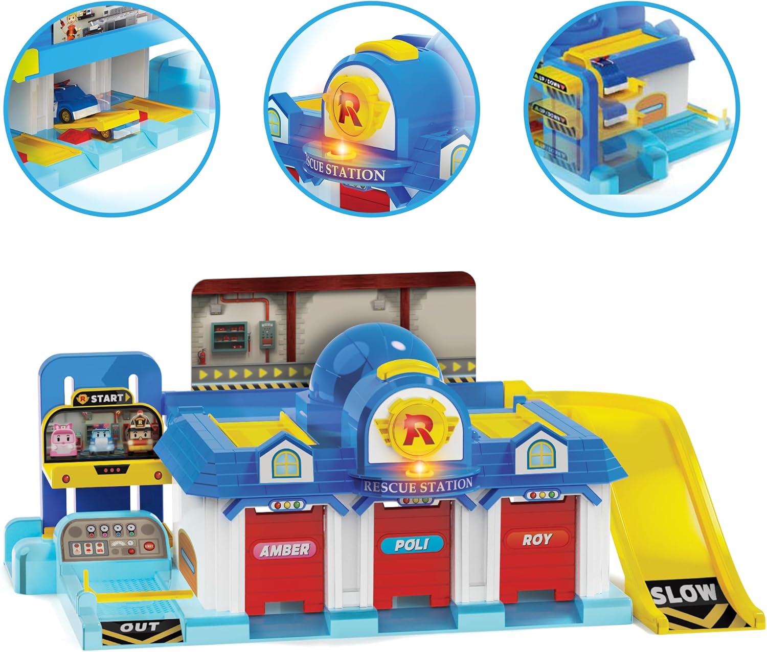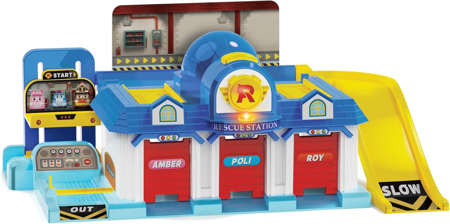 ROBOCAR POLI - QUARTIER GENERALE: Entra nell'universo della famosa serie Robocar Poli con questo quartier generale 100% fedele al cartone animato! Questo playset interattivo è il punto di riferimento ufficiale dei veicoli di soccorso di Broomstown, dove Poli, Roy, Amber e Helly si ritrovano per prepararsi per nuove missioni. UN CENTRO DI INTERVENTO DINAMICO E REALISTA: Ascensore manuale per far salire e scendere i veicoli tra i piani del QG. Rampa di accesso rapido per partenze di emergenza in un batter d'occhio. Garage di facile apertura in modo che ogni eroe possa stare pronto. Un veicolo Robocar Lucido incluso per iniziare l'avventura non appena si apre la scatola! GIOCO INTERATTIVO DIVERTENTE: Progettato per le mani piccole, questo quartier generale non richiede batterie o montaggio complicato. Gli elementi meccanici (ascensore, rampe) sono facili da maneggiare, stimolando le capacità motorie e il gioco autonomo fin dalla tenera età. LA CELEBRA SERIE ROBOCAR POLI: I fan della serie riconosceranno istantaneamente l'universo colorato e premuroso di Broomstown, con un design fedele al quartier generale visto sullo schermo. I bambini possono riprodurre le scene preferite o inventare le proprie missioni di soccorso. Trova Poli, Eli, Ambra e Roy. IDEE REGALO: È il regalo di Natale o di compleanno perfetto per i tuoi bambini di 4,5,6,7,8,9,10 anni.