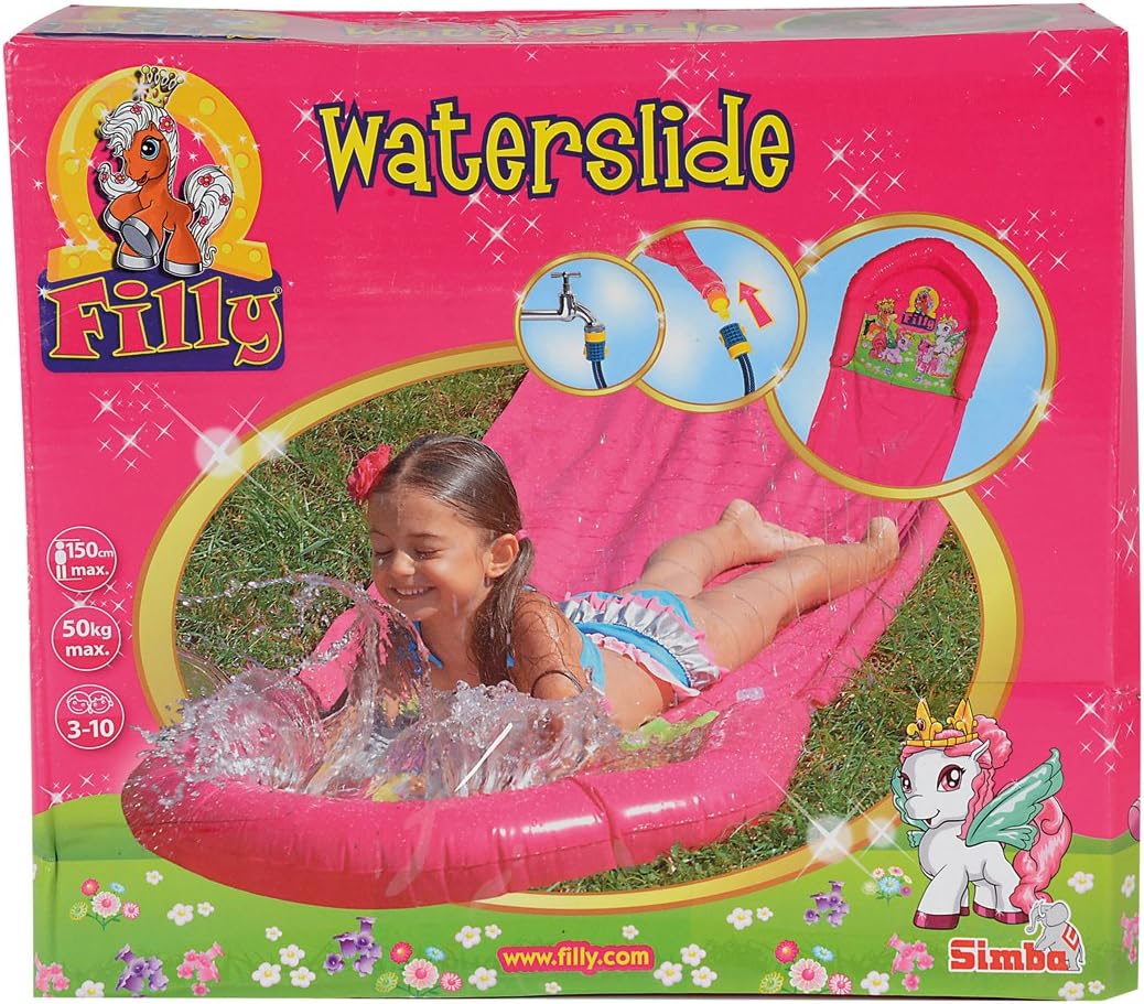 Scivolo ad acqua. Lunghezza: ca. 488 cm. Portata max: 50 kg. Colore: Fucsia. Decorazione: Filly.