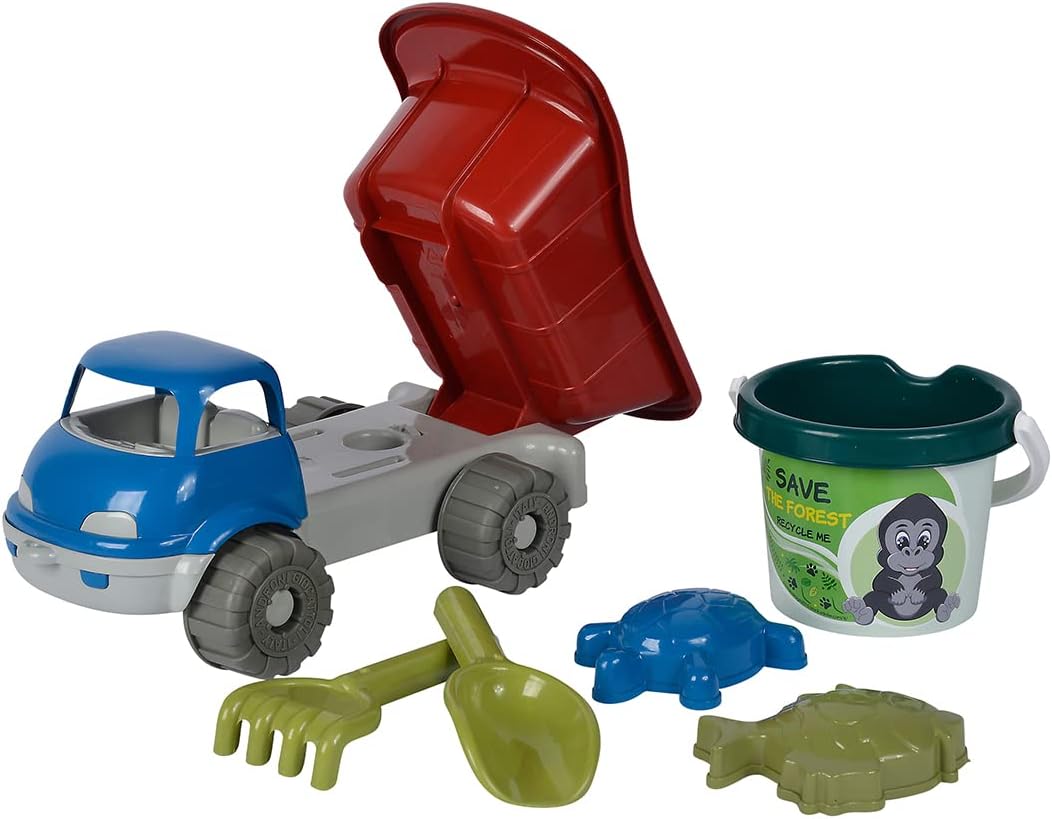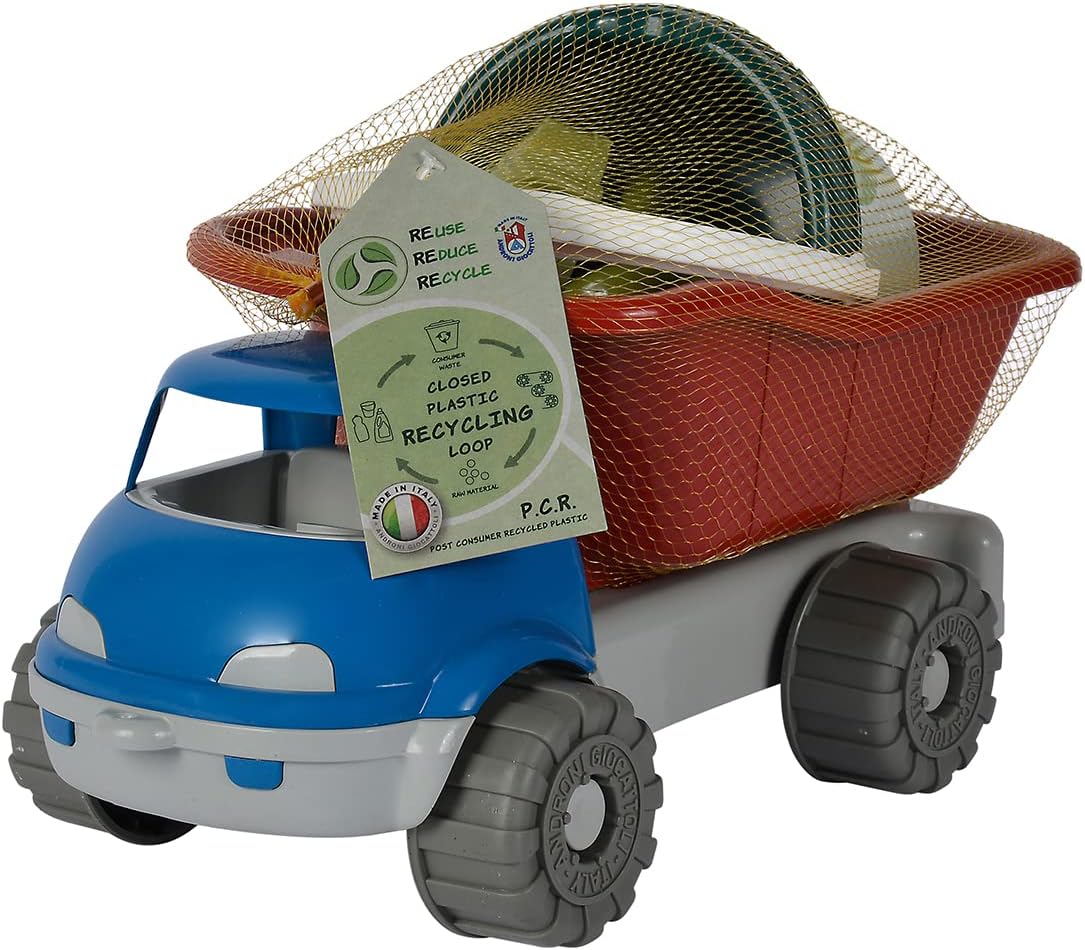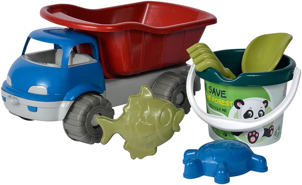 Autocarro con cassone ribaltabile riciclato, 6 pezzi, secchio, 2 stampi per sabbia, pala, rastrello, 35 cm, giocattolo per sabbia, sabbiera con finitura premium Numero modello per il tempo libero: 107134567