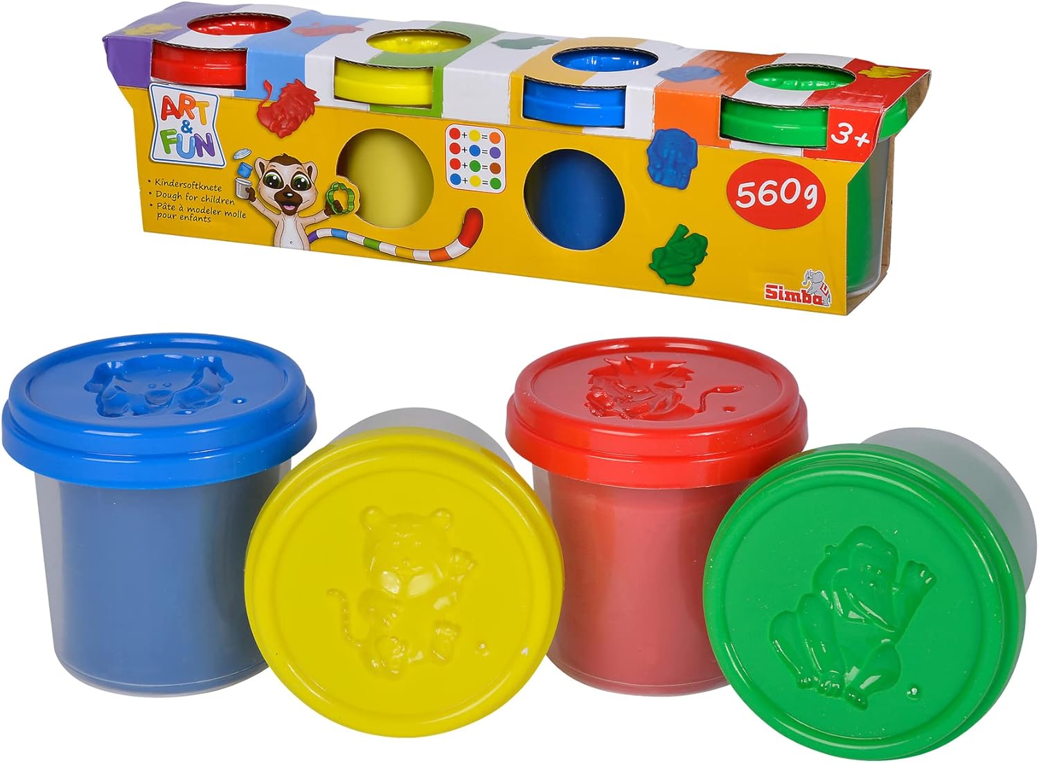 Le quattro “barattoli di argilla morbida Art & Fun” possono essere modellate e impastate in motivi fantasiosi in modo così delicato e morbido. Adatto a bambini dai 3 anni in su Simba: divertimento a misura di elefante! Il focus dello sviluppo del prodotto è l'entusiasmo dei bambini. Per ragazzi e ragazze, piccoli e grandi. I bambini dovrebbero divertirsi ed essere incoraggiati