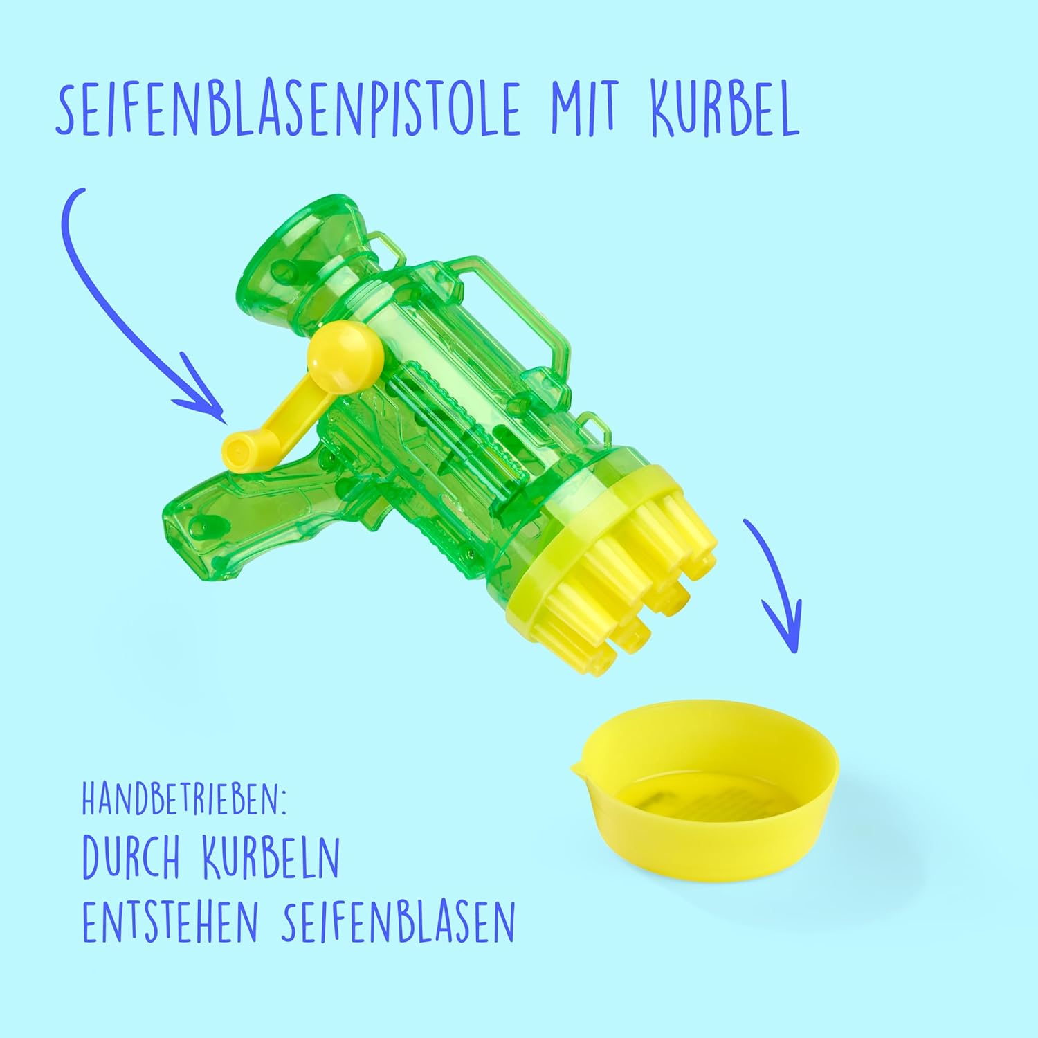 Facile da usare - Non richiede batterie, basta girare la manovella e si creeranno tante bolle in un istante Formato compatto - Dimensione ideale per le mani dei più piccoli (14 x 12 cm). Liquido da 30 ml incluso - Pronto all'uso per giocare immediatamente. Adatto a bambini dai 3 anni in su - Perfetto per giocare all'aperto e divertirsi con gli amici. Porta la magia delle bolle dove vuoi con la Bubble Fun - Pistola Sparabole di Simba! 🎈✨