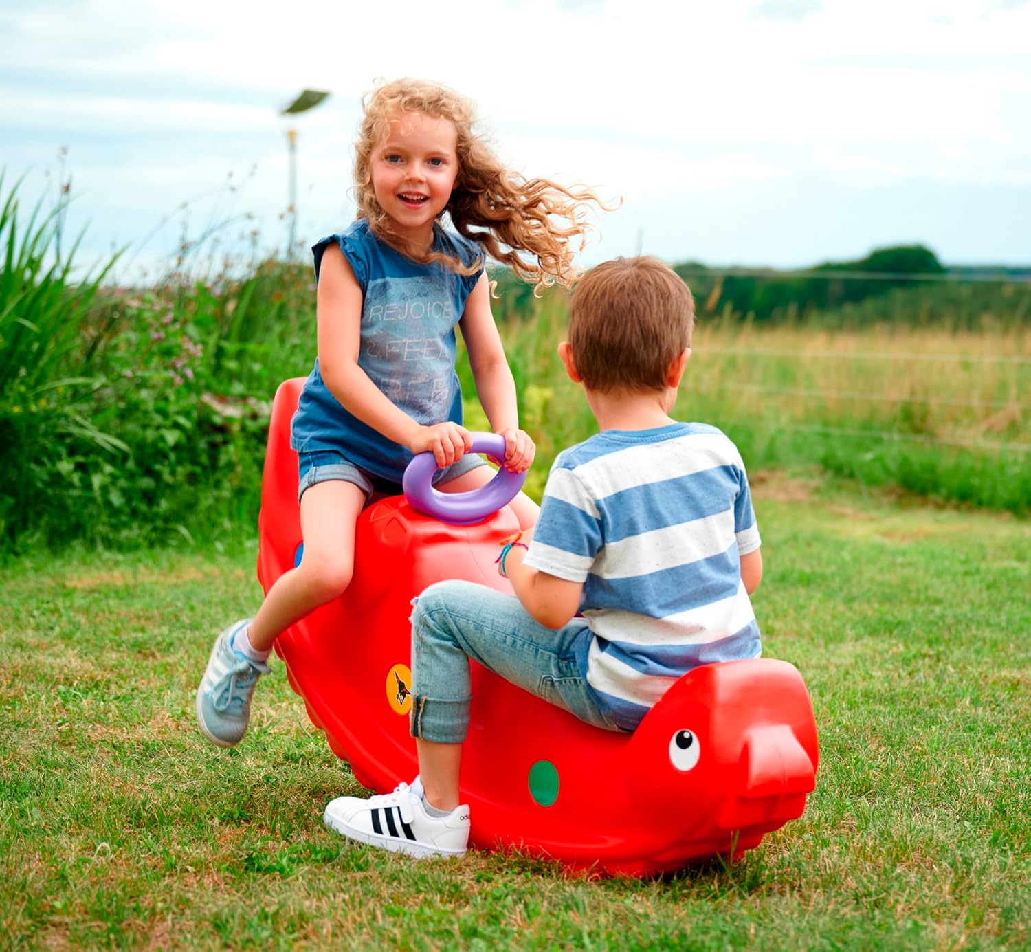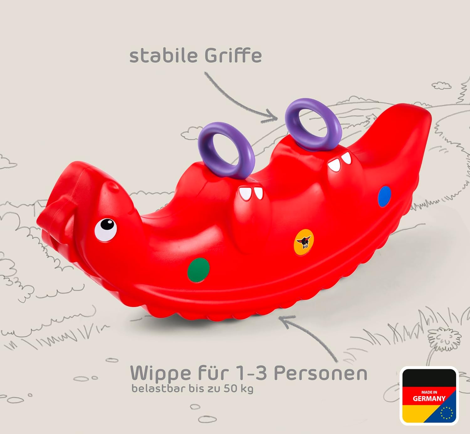 Splendido e robusto dinosauro a sedia a dondolo. Adatto da 1 anno in su. Può essere utilizzato da uno, due o tre bambini.