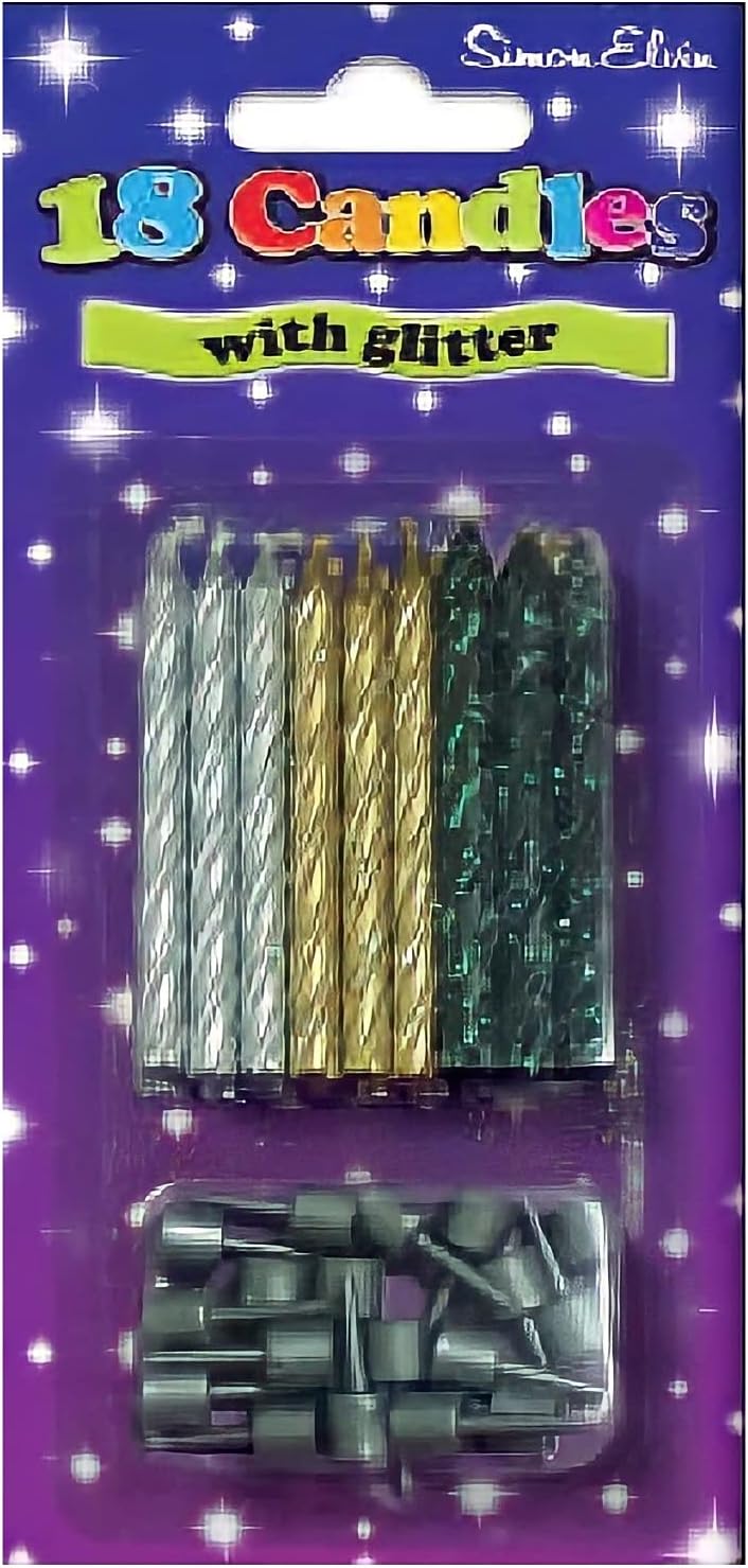 Confezione da 18. Marca: Simon Elvin. Contenuto: 18 supporti. Design: glitter, spirale. Cera.