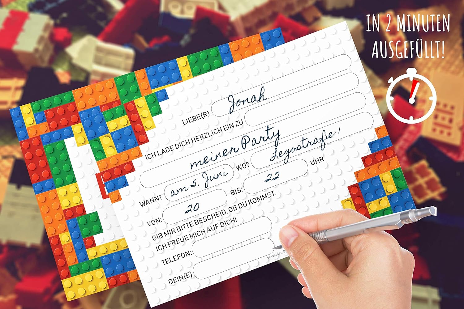 LETTS PARTY - Il tuo compleanno è alle porte e hai ancora bisogno degli inviti di compleanno giusti? Allora usa i nostri coloratissimi elementi costitutivi per biglietti d'invito. VIENI A FESTEGGIARE CON NOI - Puoi invitare fino a 12 amici alla tua festa di compleanno con il nostro set di inviti. Gli inviti alle feste in formato cartolina (DIN A6) sono super pratici e facili da distribuire. RISPARMIA TEMPO: non è necessario creare inviti che richiedono molto tempo. Nessun errore di ortografia. Grazie al semplice testo da compilare sul retro, devi solo inserire i dati chiave più importanti e il gioco è fatto! SEMPRE ADATTA - I nostri inviti con le costruzioni colorate sono particolarmente adatti per i piccoli hobbisti, ma sono adatti anche per ragazzi e ragazze più grandi. Grazie al design neutro dei biglietti d'invito possono essere utilizzati anche per appuntamenti, appuntamenti di gioco e molto altro ancora. essere utilizzato. CLIMA NEUTRO dalla GERMANIA - I nostri biglietti d'invito Bauklotz sono stampati in Germania in modo neutro dal punto di vista climatico. AMBITO DI CONSEGNA - La fornitura comprende 12 bellissimi biglietti d'invito per bambini realizzati in robusto cartone da cartolina e 12 buste bianche.