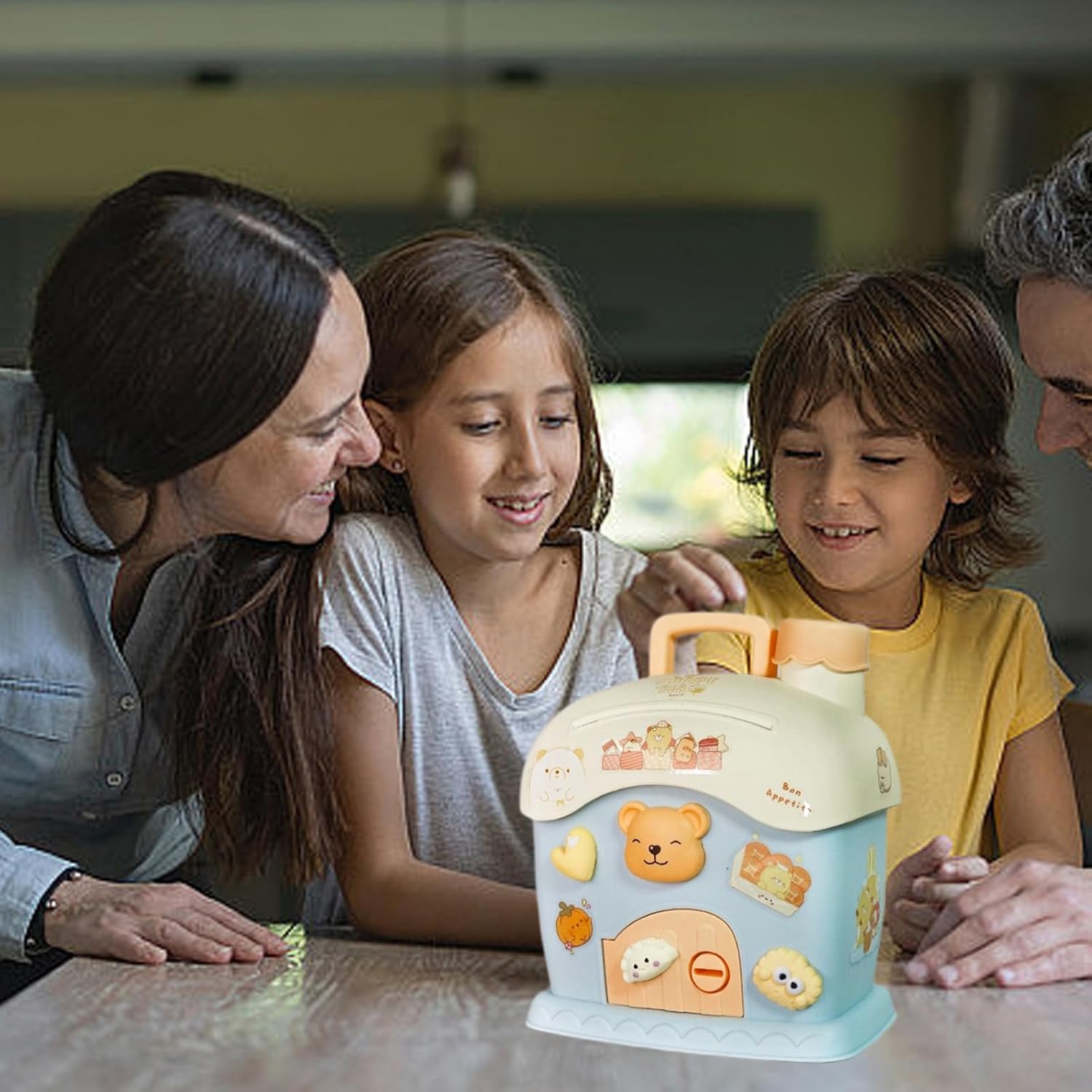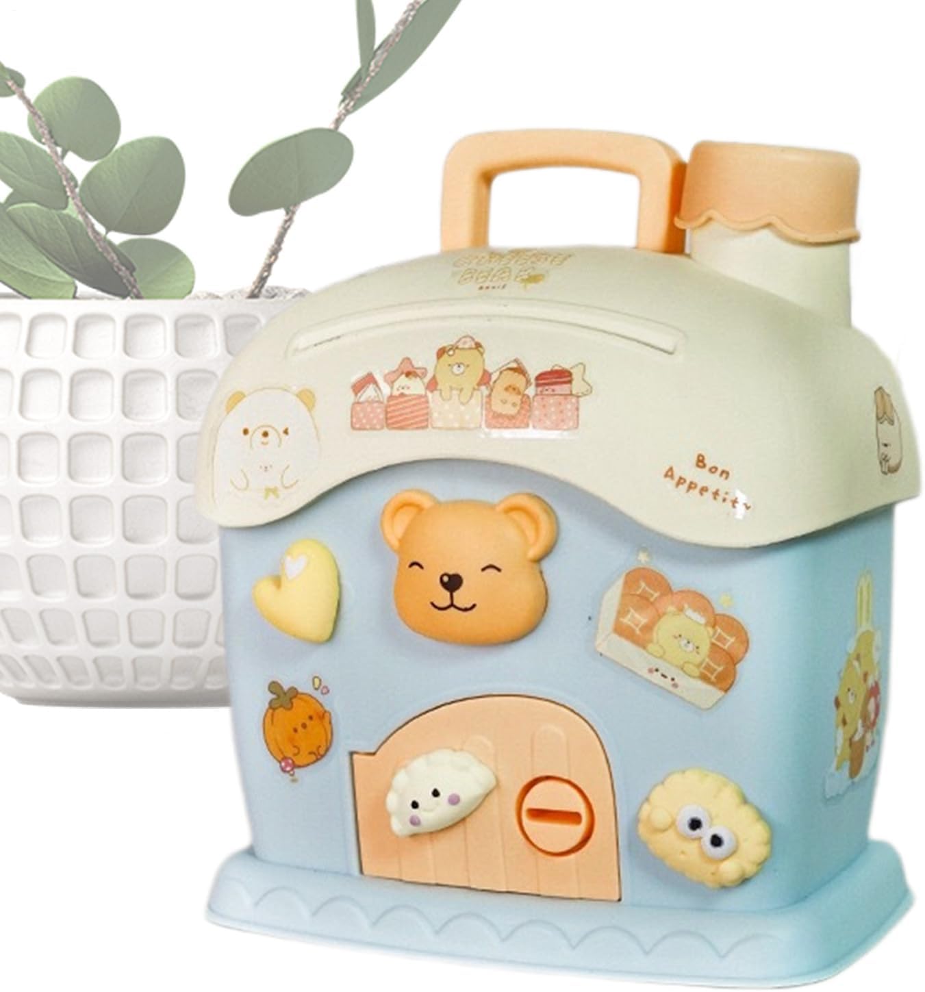 Divertente gioco educativo: questa banca di monete a casa non solo promuove l'abitudine di risparmiare, ma serve anche come strumento educativo e insegna l'importanza della responsabilità finanziaria. Facile da pulire: dite addio alla noiosa manutenzione con questa panca per monete da casa. Basta pulire con un panno umido. Non è necessario risciacquare l'acqua. Tienilo pulito senza sforzo e sembra nuovo di zecca. Ampiamente usato: aggiungi un tocco di fascino alla tua casa con questa graziosa e delicata panca per monete di casa. Perfetto per librerie e scrivanie, è un modo colorato per conservare e migliorare il tuo arredamento. Dimensioni generali: non è necessario smontare per conservare i tuoi risparmi, poiché questa Coin Bank ha una grande capacità, che consente di conservare importi sostanziali. Nutrire la responsabilità: dai ai tuoi figli il potere di controllare i loro risparmi con 2 chiavi e un simpatico adesivo incluso in questa banca di monete a forma di casa, che incoraggia la responsabilità finanziaria e la creatività.