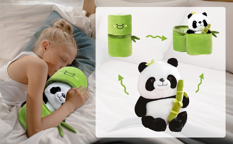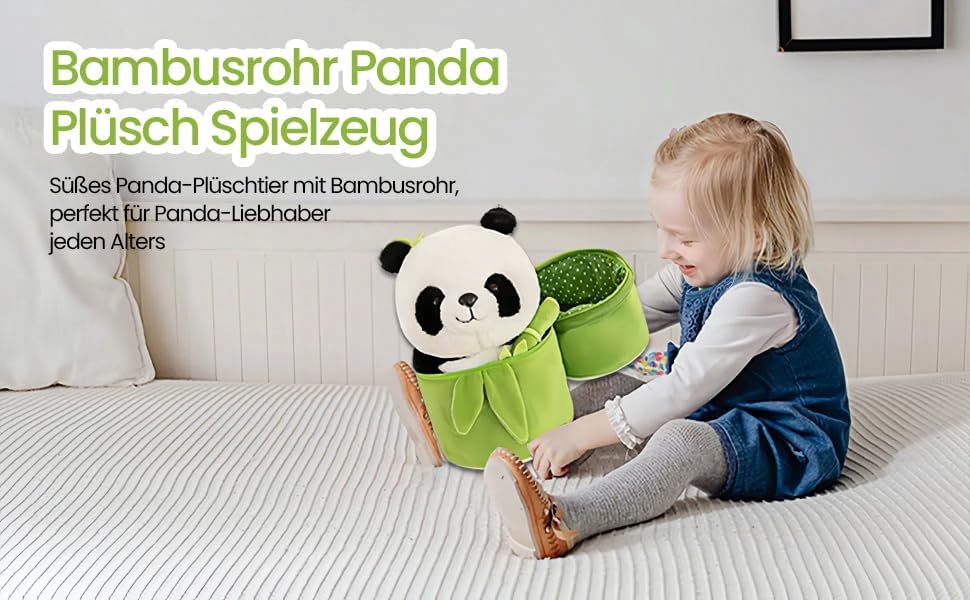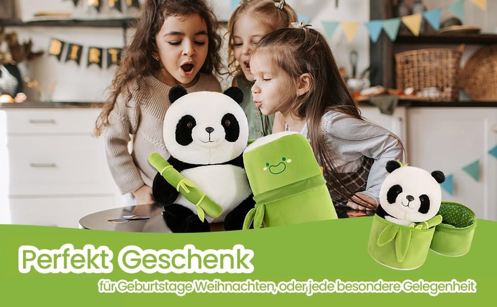 Design unico: questo peluche panda convince per la sua realistica forma panda e un design creativo in bambù. Il simpatico panda è avvolto in bambù verde smeraldo e ricoperto da una morbida pelliccia bianca e nera che gli conferisce un aspetto realistico Peluche di alta qualità: questo peluche panda è realizzato in peluche morbido e piacevole al tatto per una sensazione piacevole e delicata sulla pelle. L'imbottitura è realizzata in morbido poliestere al 100% ed è quindi sicura per i bambini Versatile: il nostro peluche panda non è solo adatto per giocare, ma anche come compagno di sonno per bambini e come decorazione per la casa o la festa. Può essere posizionato ad esempio su divano, letto, sedia da ufficio o auto Un ottimo regalo: sorprendi la tua famiglia, i tuoi cari, i tuoi figli o gli amici con questo peluche panda in occasioni speciali come Natale, Ringraziamento, Pasqua, San Valentino, compleanni e lauree Nota – Superficie lavabile. Lavabile a mano/lavabile in lavatrice in acqua fredda, ciclo delicato, asciugare all'aria. Adatto per bambini dai 36 mesi in su