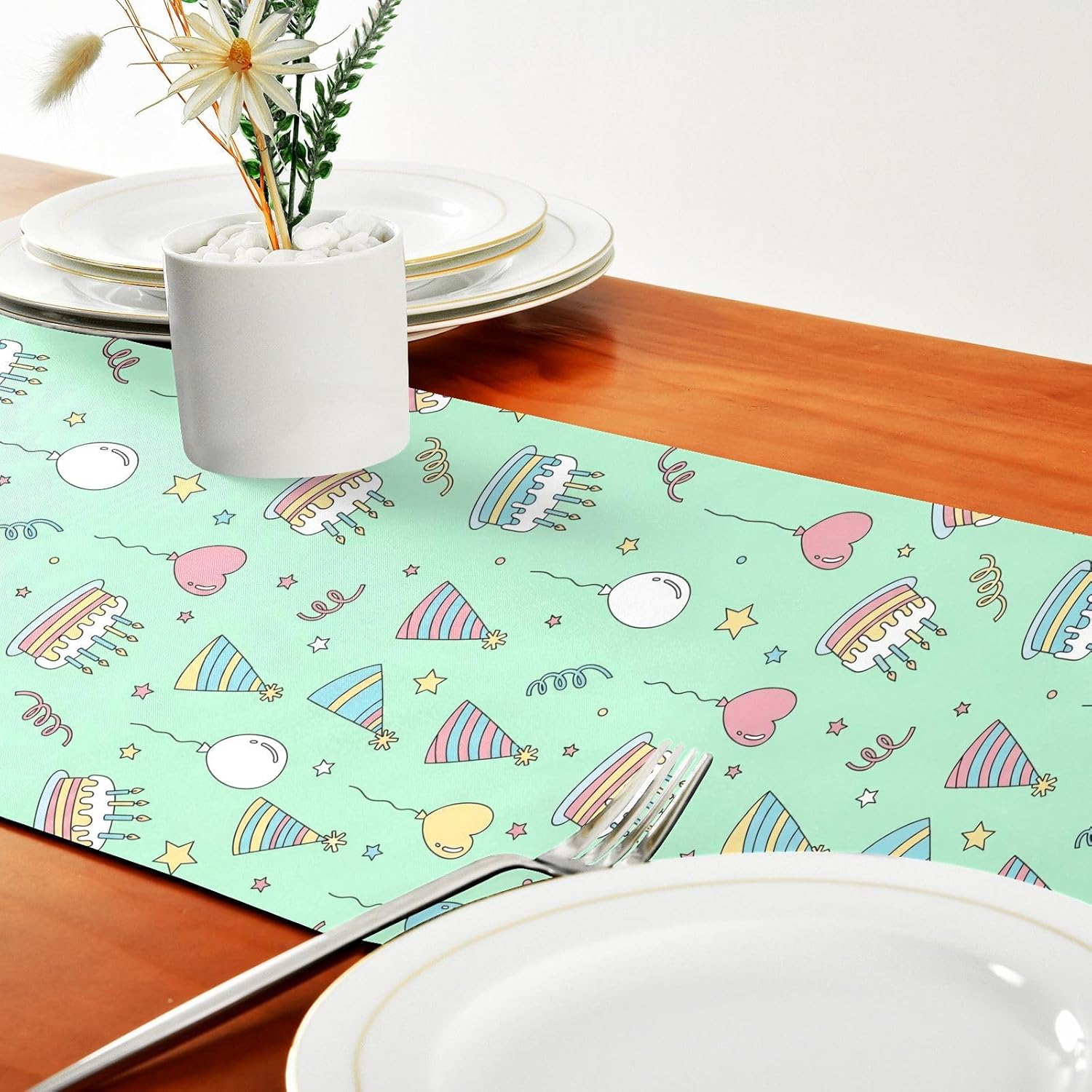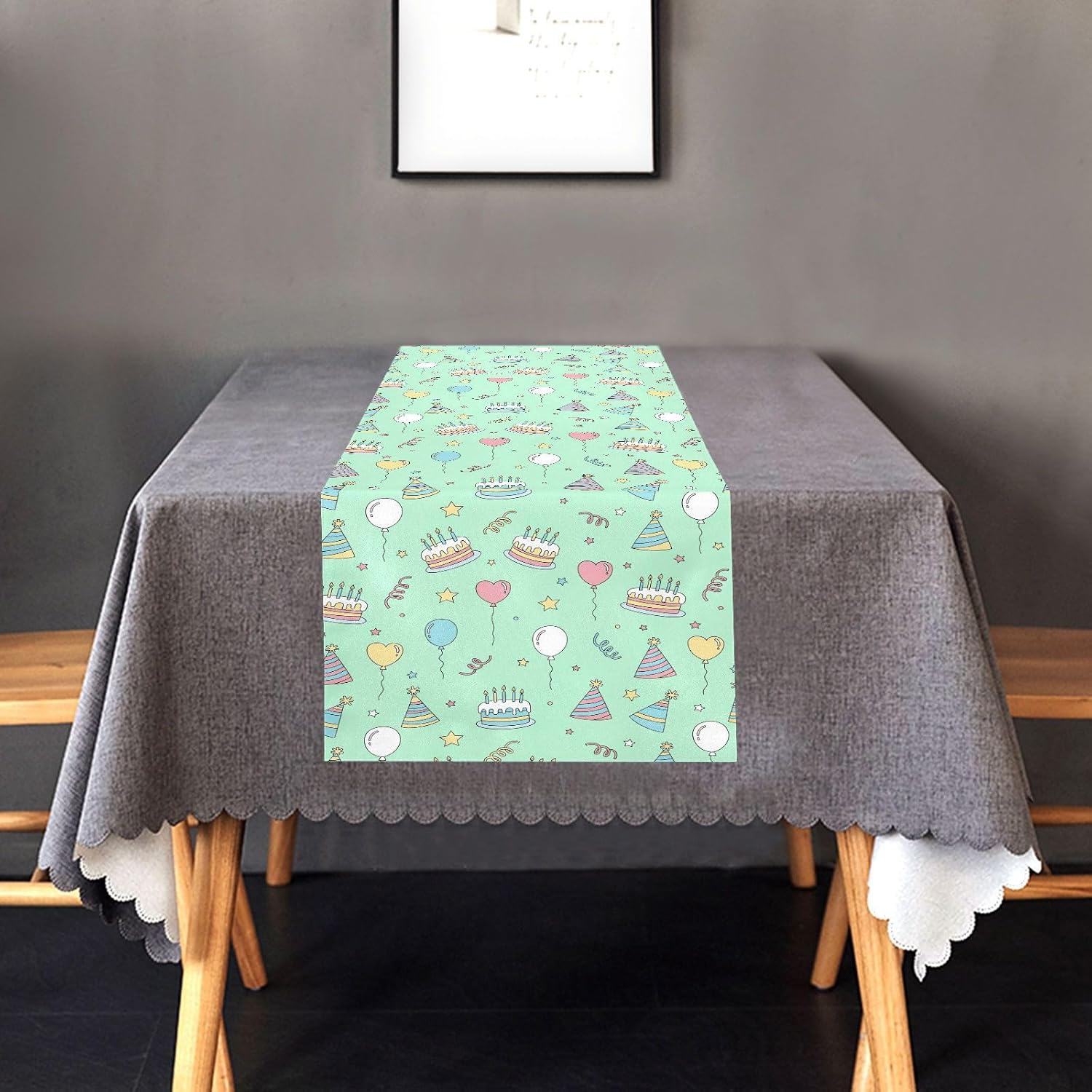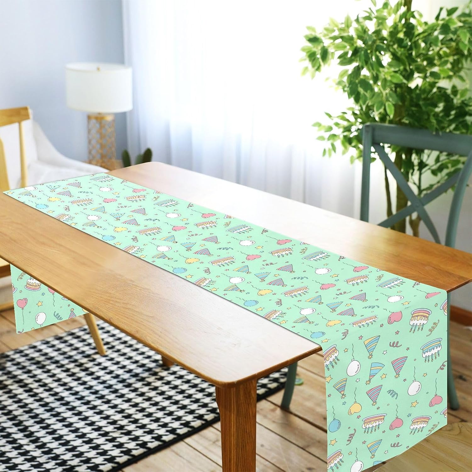 Simpatico runner da tavola di compleanno, verde chiaro, per la tavola, decorazione per la casa, la cucina, 183 cm di lunghezza
