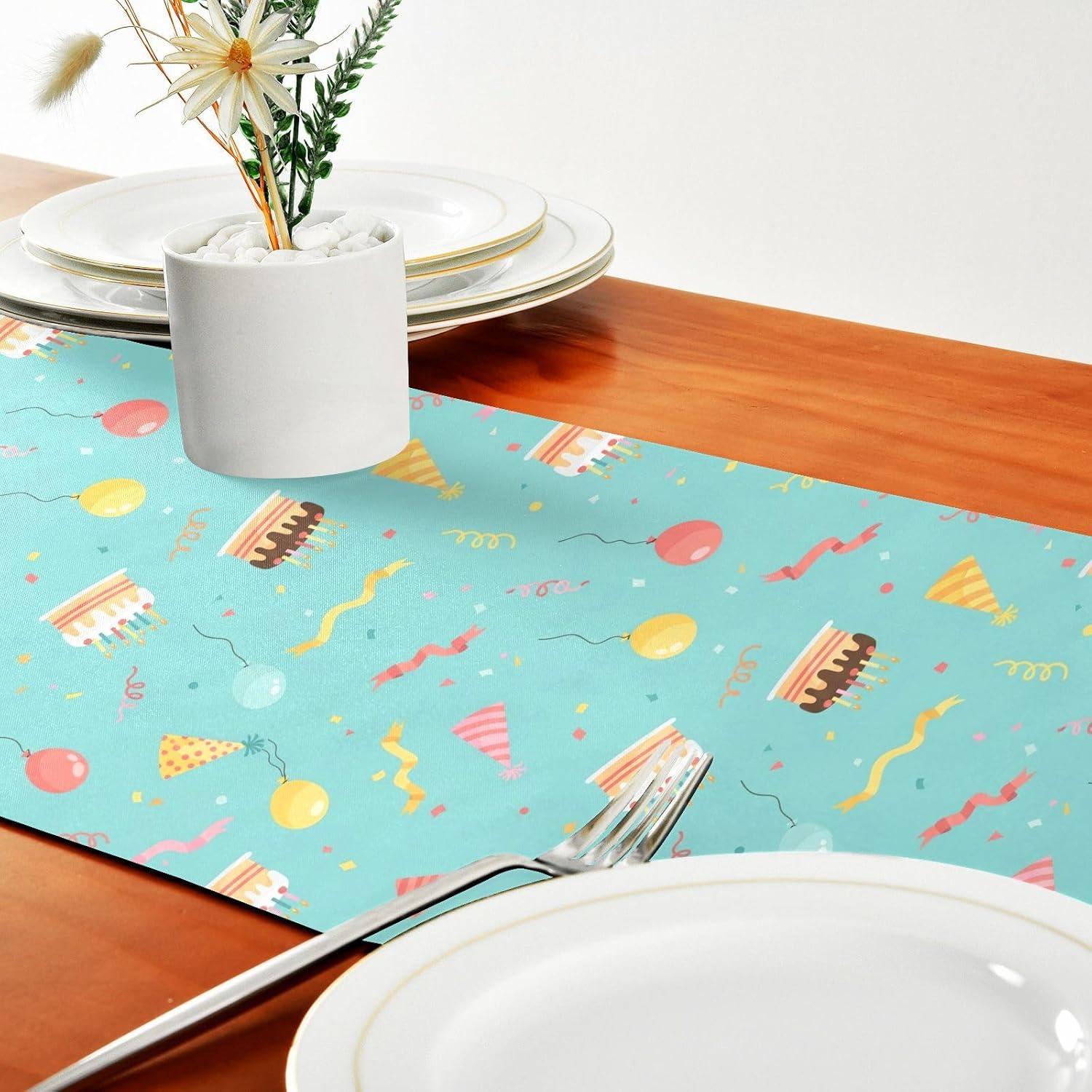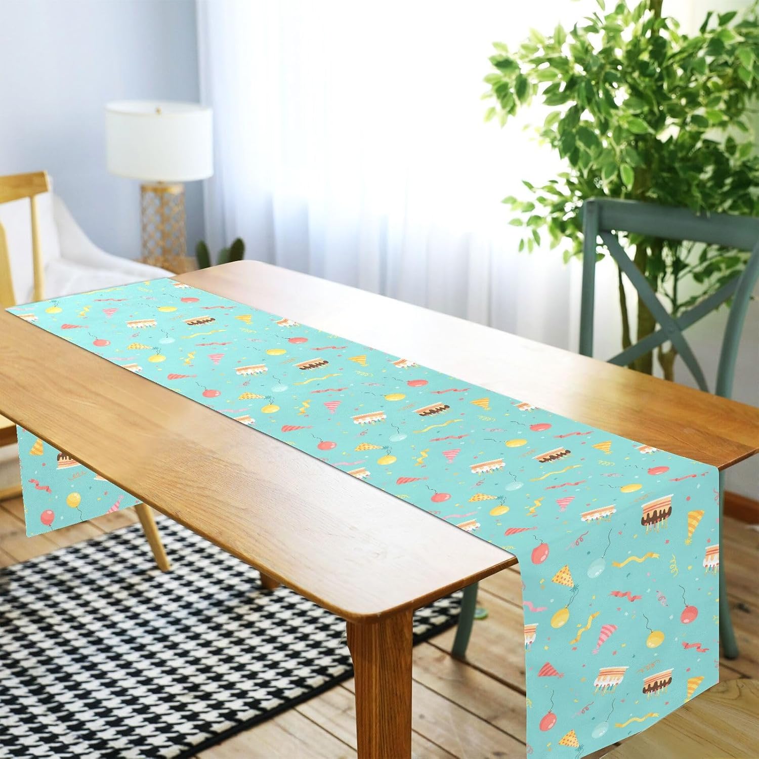 Simpatico runner da tavola per compleanno, colore ciano, decorazione autunnale per tavolo, casa, cucina, lunghezza 274 cm