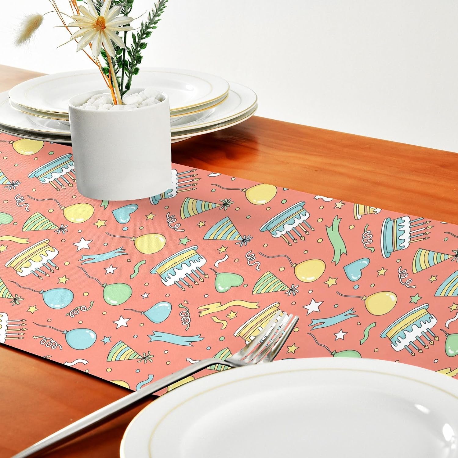 Simpatico runner da tavola per compleanno, colore rosa corallo, per decorare la tavola, la casa e la cucina, lungo 274 cm