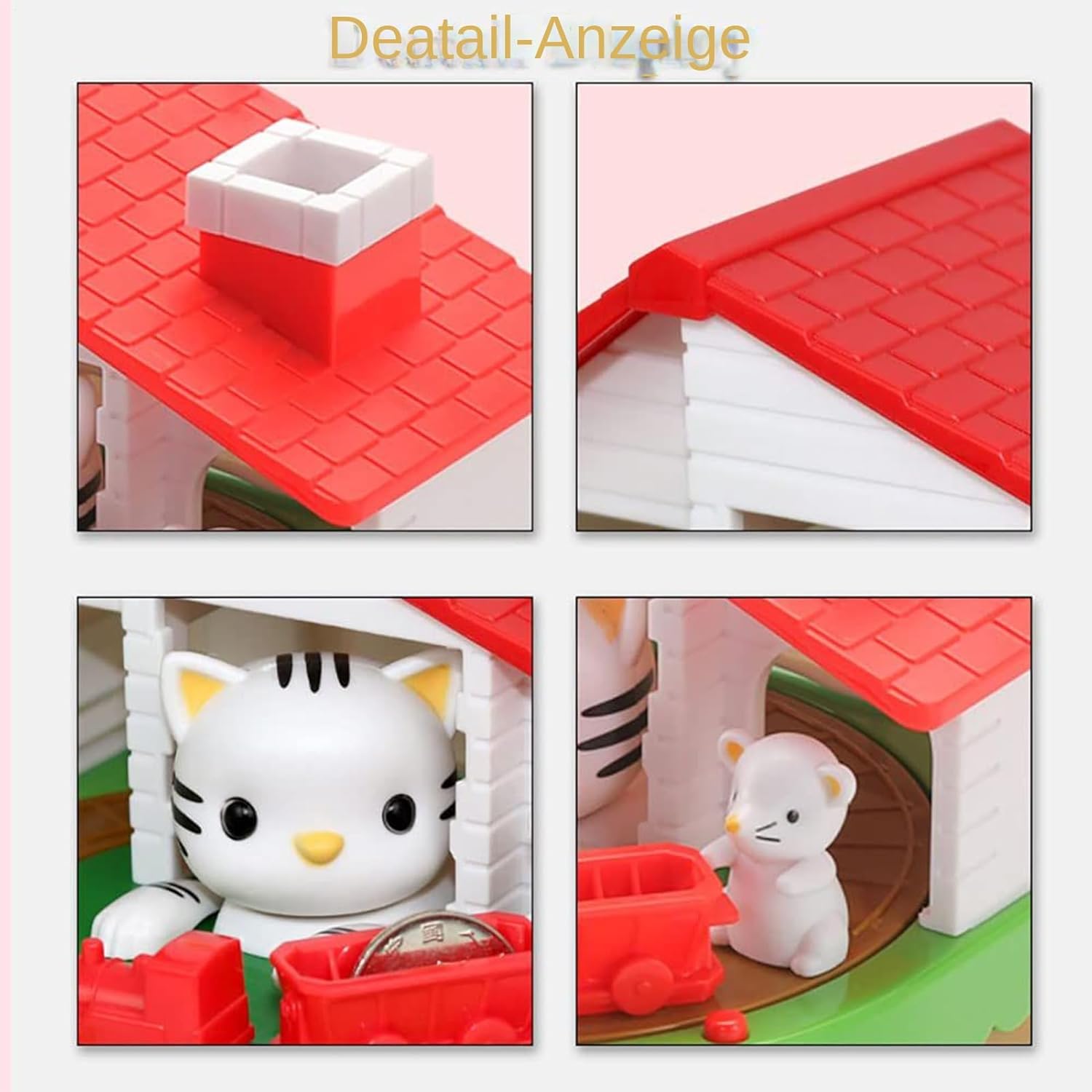 Effetti sonori giocosi: stimola l'immaginazione con un dinamico, che offre musica e segnali sonori vivaci, tra cui incantevoli suoni di gatto per una maggiore gioia Multiuso: regalo perfetto per i bambini che unisce la pratica quotidiana con valore sentimentale. Robusto compagno di lavoro per la casa e allo stesso tempo apprezzare l'attenzione di colleghi, amici o familiari a Natale, compleanni o anniversari. Metodo giocoso: entusiasma i bambini con approcci efficaci all'apprendimento al risparmio e alla conoscenza finanziaria – aumenta il successo educativo attraverso esperienze pratiche Design unico: innovativo salvadanaio a forma di casetta per gatti con pratica funzione moneta: un divertente tiraggio per topo fornisce le monete. Questa idea originale porterà gioia ai bambini e incoraggia il risparmio regolare per i piccoli desideri. Recinzione dinamica della moneta: premendo il pulsante rosso o inserendo monete, i topi scivolano sulla rotaia. La collezione automatica di monete nella base crea un'esperienza di gioco coinvolgente con un meccanismo adatto ai bambini.