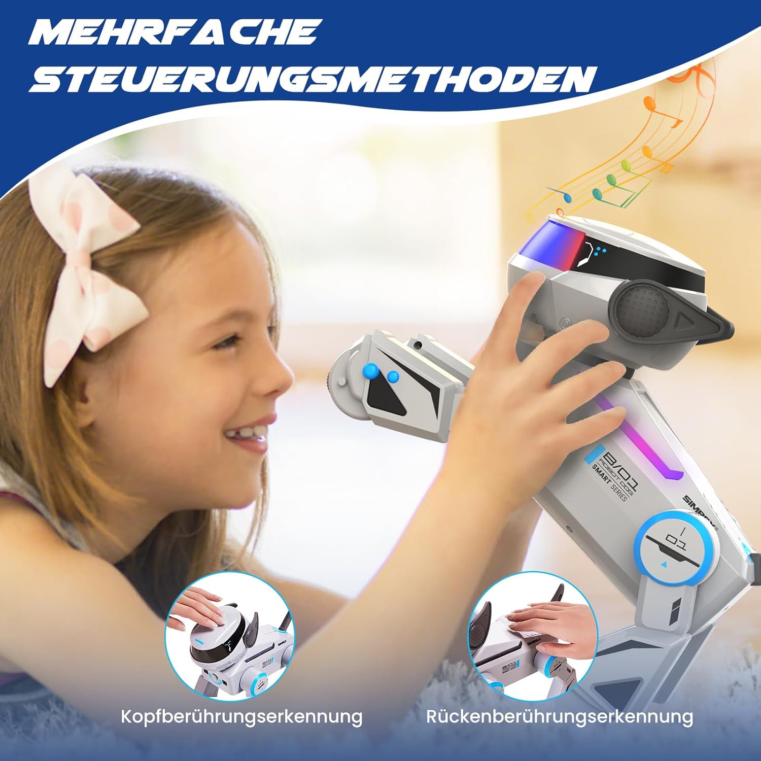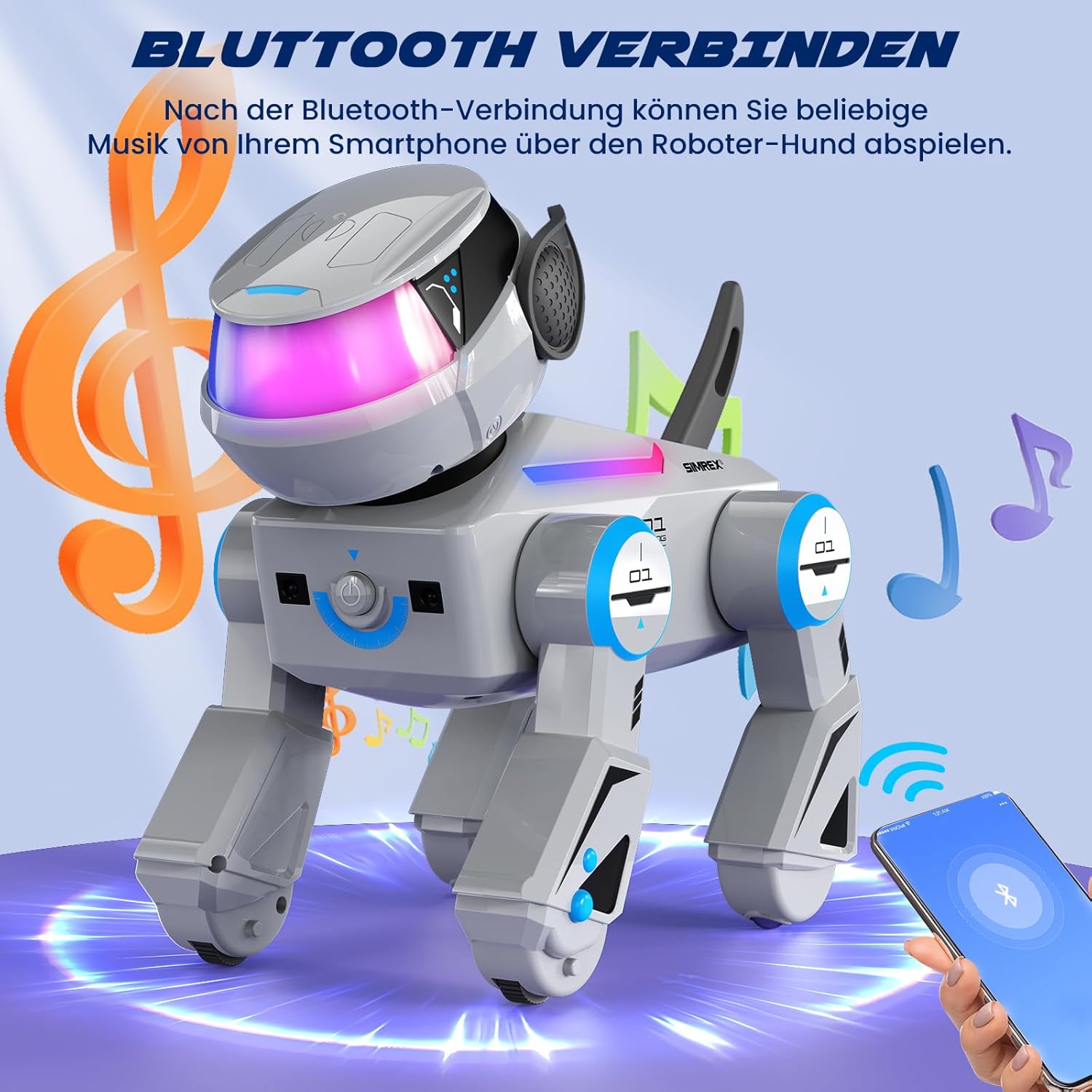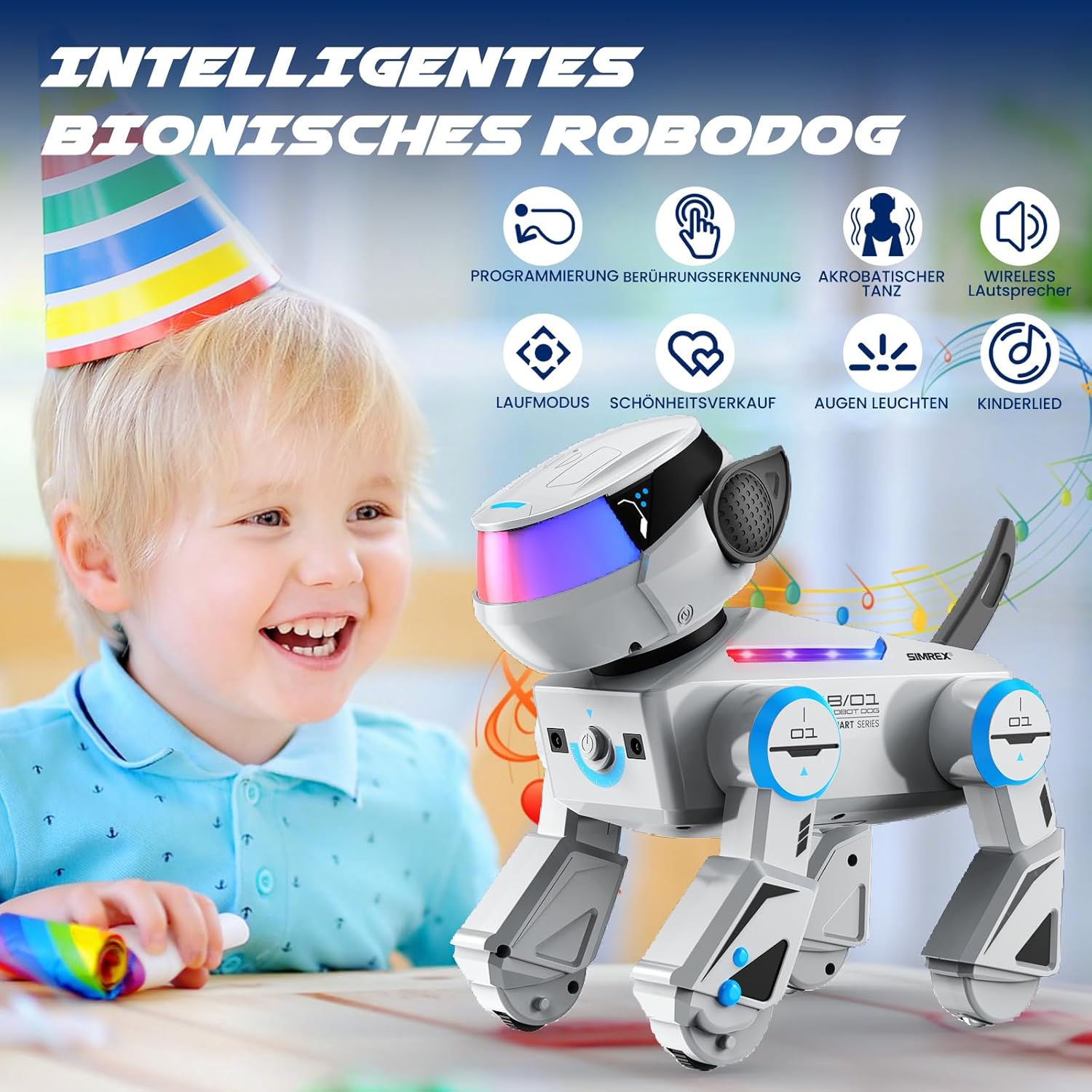 [Cane robot intelligente e interattivo]: il Cyber Dog SIMREX AN-02 è un compagno robot avanzato con funzioni intelligenti! Questo realistico cane robot esegue combinazioni programmate di azioni, risponde alle interazioni sensibili al tocco e ti segue come un vero animale domestico. Con espressivi occhi LED e movimenti fluidi, può salutare, sedersi, fare verticali, giravolte, capriole e persino flessioni per un intrattenimento infinito e una compagnia giocosa. [Emozionanti modalità di danza e musica]: guarda il tuo cane robot eseguire routine di danza dinamiche al ritmo della musica! I suoi trucchi versatili e i suoi movimenti ritmici lo rendono un successo alle feste. Connettiti tramite Bluetooth per riprodurre la tua musica preferita mentre il robot balla al ritmo per un'esperienza completamente coinvolgente. [Telecomando e sensore tattile]: assumi il pieno controllo con il telecomando incluso o interagisci direttamente con il design sensibile al tocco. Una semplice pressione di un pulsante o un tocco delicato gli permettono di correre, ballare o eseguire fantastici trucchi. I controlli intuitivi, progettati per bambini dai 6 anni in su, offrono ore di divertimento interattivo. [Batteria ricaricabile a lunga durata]: alimentato da due batterie da 3,7 V 1200 mAh, SIMREX AN-02 Cyber Dog offre fino a 40 minuti di divertimento continuo per carica. Niente più continui cambi di batteria: carica e continua a divertirti! Ideale per interni ed esterni [Il regalo perfetto per bambini e appassionati di tecnologia]: progettato da SIMREX, questo cane robot è il regalo di compleanno o di vacanza ideale per ragazzi e ragazze dai 6 anni in su. Unendo istruzione e intrattenimento, la sua intelligenza artificiale reattiva incoraggia la creatività e le capacità motorie: un must per gli esploratori curiosi