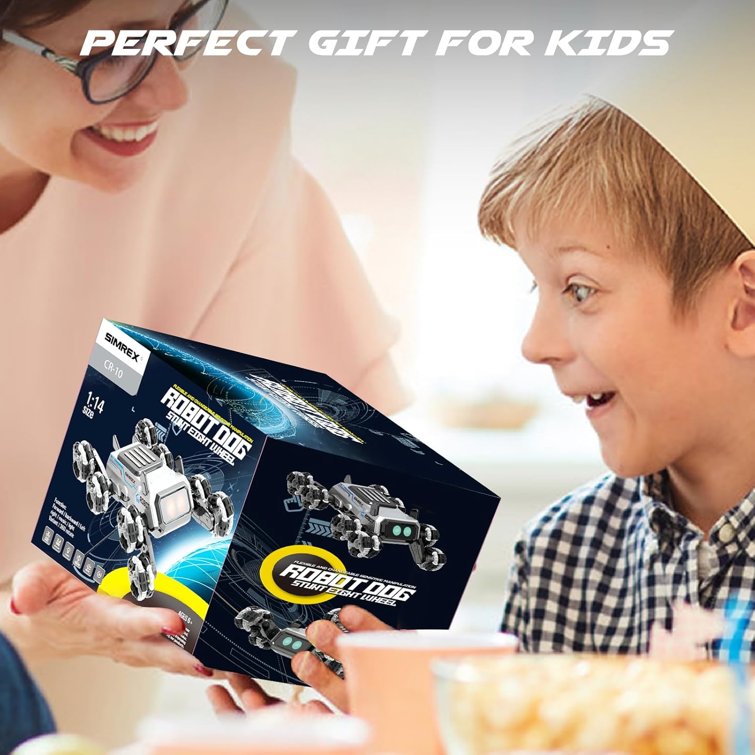 Cane Robot Dinamico a 8 Ruote: Con occhi LED RGB a cambio automatico e sistema di ruote Mecanum per una mobilità a 360°. Realizza scivolamenti laterali, sprint e figure precise Doppio comando: utilizza il telecomando ergonomico o il braccialetto a rilevamento gesti per un controllo senza latenza fino a 15 m. Attiva istantaneamente 8 modalità cascate con un solo pulsante Progettato per Durer: Ruote industriali Mecanum, gomme antiscivolanti e due batterie Li-ion 500mAh per una lunga durata di gioco 8 modalità di azione: Alterna tra posizione di combattimento, spostamento furtivo, corsa rapida e figure avanzate, con effetti sonori sincronizzati Regalo educativo STEM: stimola le competenze di programmazione e controllo, ideale per i bambini di 6 anni e più. Consegnato in confezione regalo premium