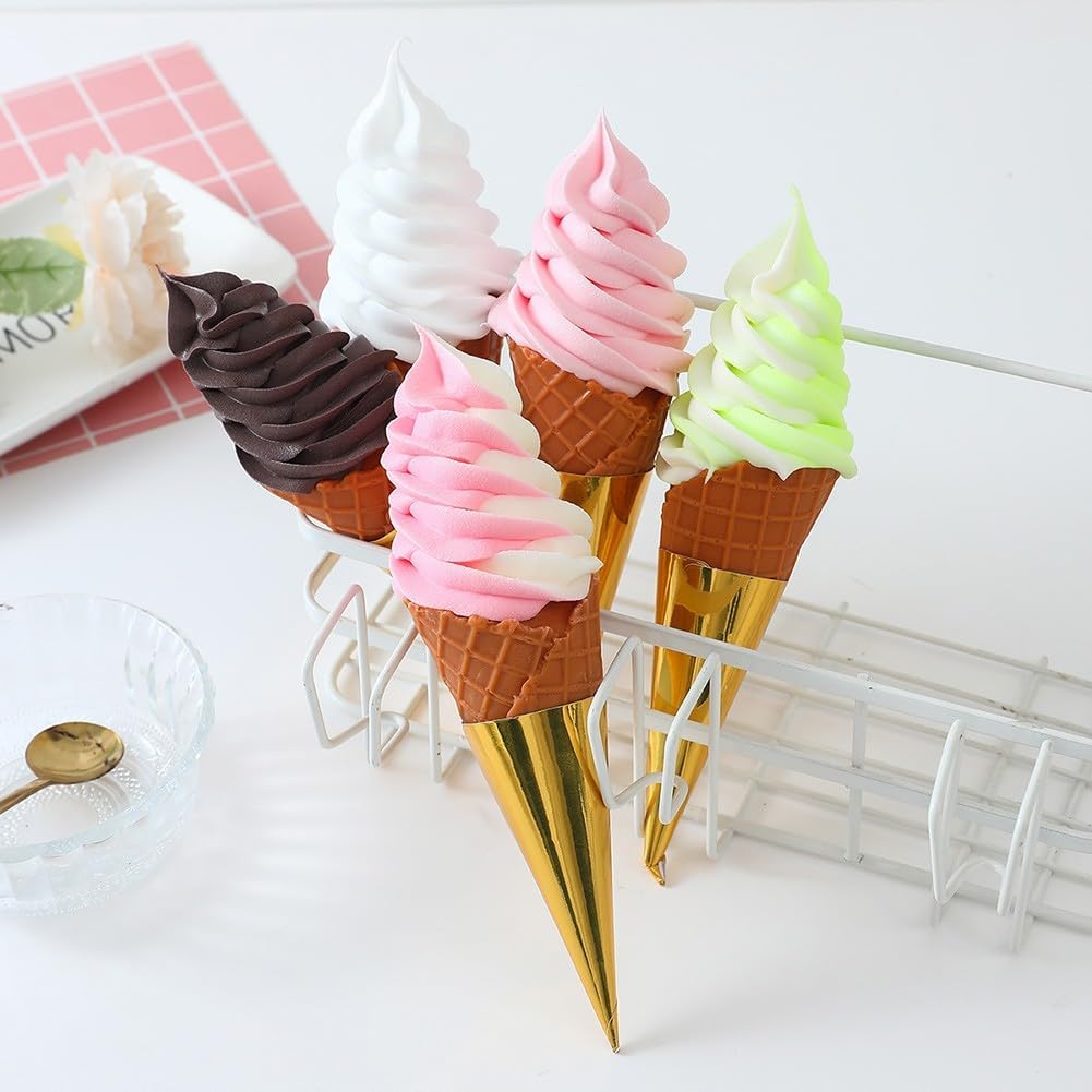 Puntello realistico: questo modello di cono gelato simulato da 22 cm presenta una consistenza realistica e colori vivaci, creando una decorazione accattivante per negozi di dessert che attira i clienti durante i viaggi Soluzione visiva completa: realizzata in resina di lunga durata, questa replica di alimenti finti mantiene la sua forma senza sciogliersi, offrendo un'opzione di visualizzazione di lunga durata per composizioni di finestre e vetrine da forno Materiale di alta qualità: realizzato in PVC di alta qualità e resina composita, questo gelato artificiale fornisce un accessorio robusto ma leggero che resiste a frequenti manipolazioni pur rimanendo resistente agli odori Decorazione versatile: misura 22 centimetri di altezza, questo modello di cono finto serve a molteplici scopi espositivi, dai controsoffitti del caffè ai centrotavola per feste, adattandosi a vari temi decorativi e occasioni Visiva immediata per l'impatto: i dettagli accuratamente scolpiti e la colorazione autentica creano un fascino immediato dell'appetito, rendendo questo prodotto alimentare simulato perfetto per migliorare ambienti di vendita al dettaglio e sfondi fotografici
