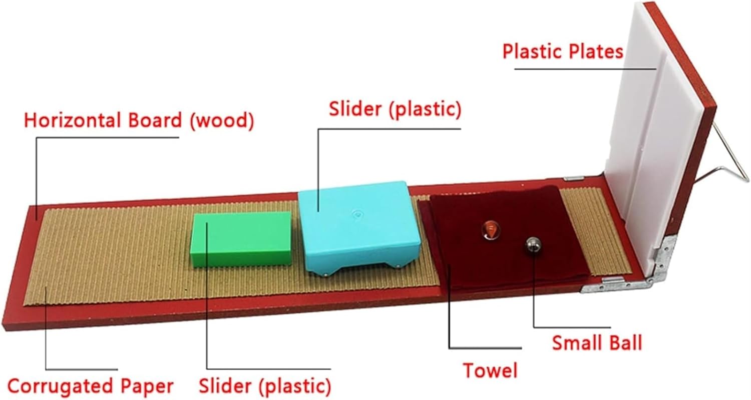 Puro al 100%. [Sperimentatore di movimento e forza] - Esplora l'attrezzatura didattica della meccanica fisica, ovvero un oggetto stazionario rimarrà in uno stato stazionario e un oggetto in movimento rimarrà in uno stato di movimento lineare uniforme. [Struttura del prodotto]- Lo strumento è composto principalmente da una piastra orizzontale, una piastra di plastica, un carrello, un cursore, una pallina e vari materiali con diversa ruvidità. [Come usare] - Sollevare la staffa per realizzare la piastra inclinata con una certa inclinazione, inserire una piastra di plastica eccessiva nel collegamento tra la piastra inclinata e la piastra orizzontale, alzare il deflettore all'estremità superiore della piastra inclinata e l'esperimento può essere eseguito una volta completata l'installazione. [Un oggetto in movimento ha inerzia] - Alza il deflettore anteriore della piastra orizzontale, posiziona un oggetto sul carrello, lascia che il carrello scivoli lungo il pendio, il carrello si ferma quando incontra il deflettore e l'oggetto sul carrello continua a muoversi scivolare in avanti per inerzia.