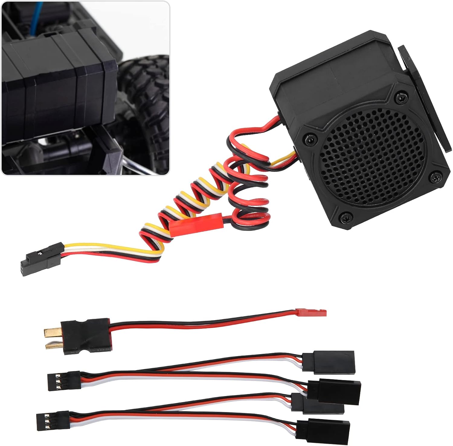 Tecnologia di sintesi delle particelle sonore: utilizzando la tecnologia SGS all'avanguardia, questo simulatore offre un'esperienza audio coinvolgente ricreando accuratamente i suoni del motore e migliorando il realismo del tuo veicolo RC. Opzioni audio versatili: goditi la flessibilità di 10 suoni del motore integrati e 5 toni di allarme, che ti consentono di personalizzare la tua esperienza RC. Passa facilmente da un suono all'altro per adattarlo alle prestazioni e allo stile del tuo veicolo. Effetti ausiliari migliorati: il canale Aux espande le tue possibilità sonore e abilita effetti sonori aggiuntivi per un'esperienza più dinamica. Compatibile con batterie Lipo fino a 4S e garantisce prestazioni ottimali senza distorsioni. Esperienza utente intuitiva: questo simulatore presenta comandi vocali intelligenti sia in inglese che in cinese per funzionare. Cancella i segnali audio attraverso le impostazioni e semplifica l'utilizzo per gli appassionati di tutti i livelli. Design robusto e affidabile: realizzato con materiali di prima qualità, questo simulatore di suono è progettato per una facile installazione e durata. La struttura durevole garantisce che possa resistere alle esigenze di un uso frequente e fornire prestazioni costanti.
