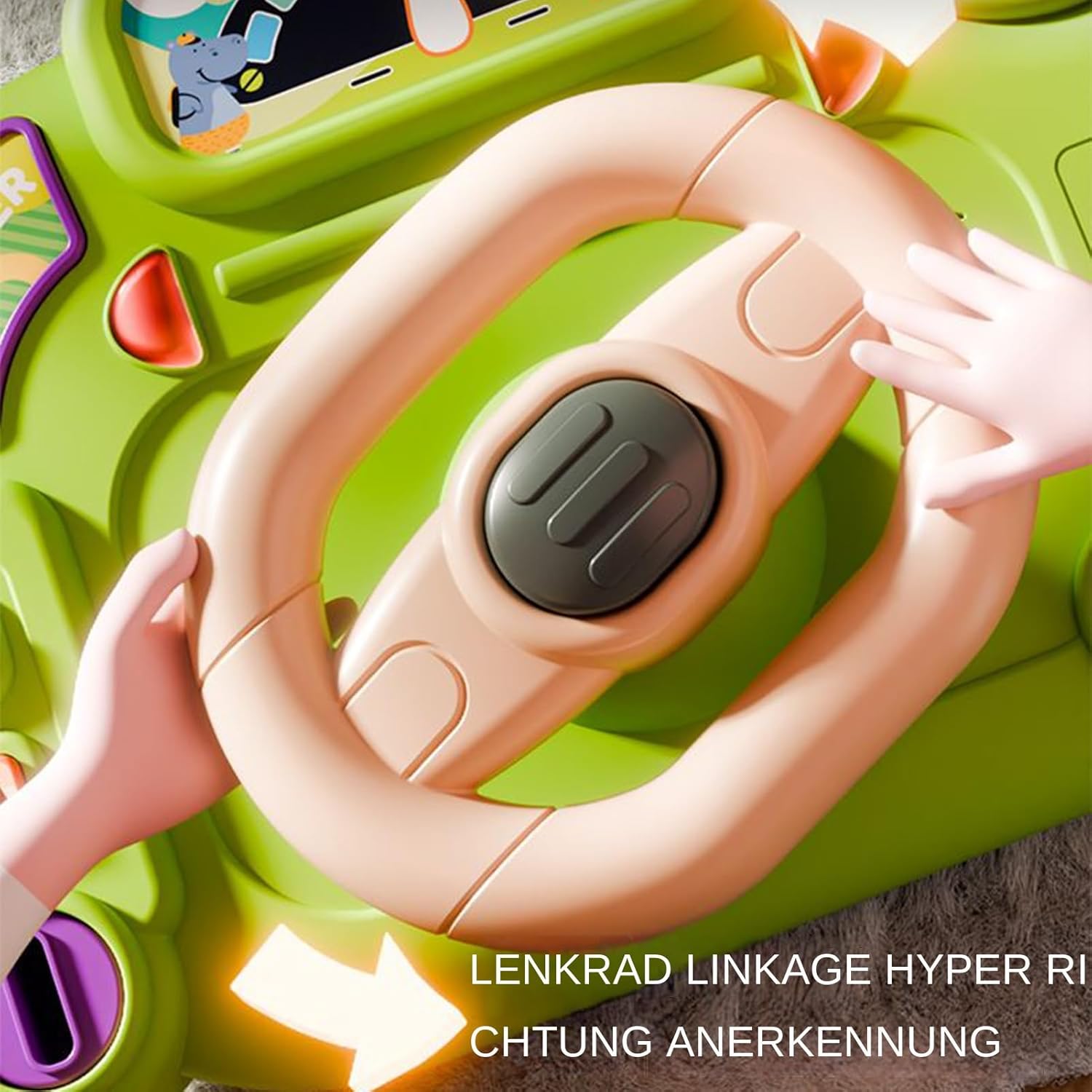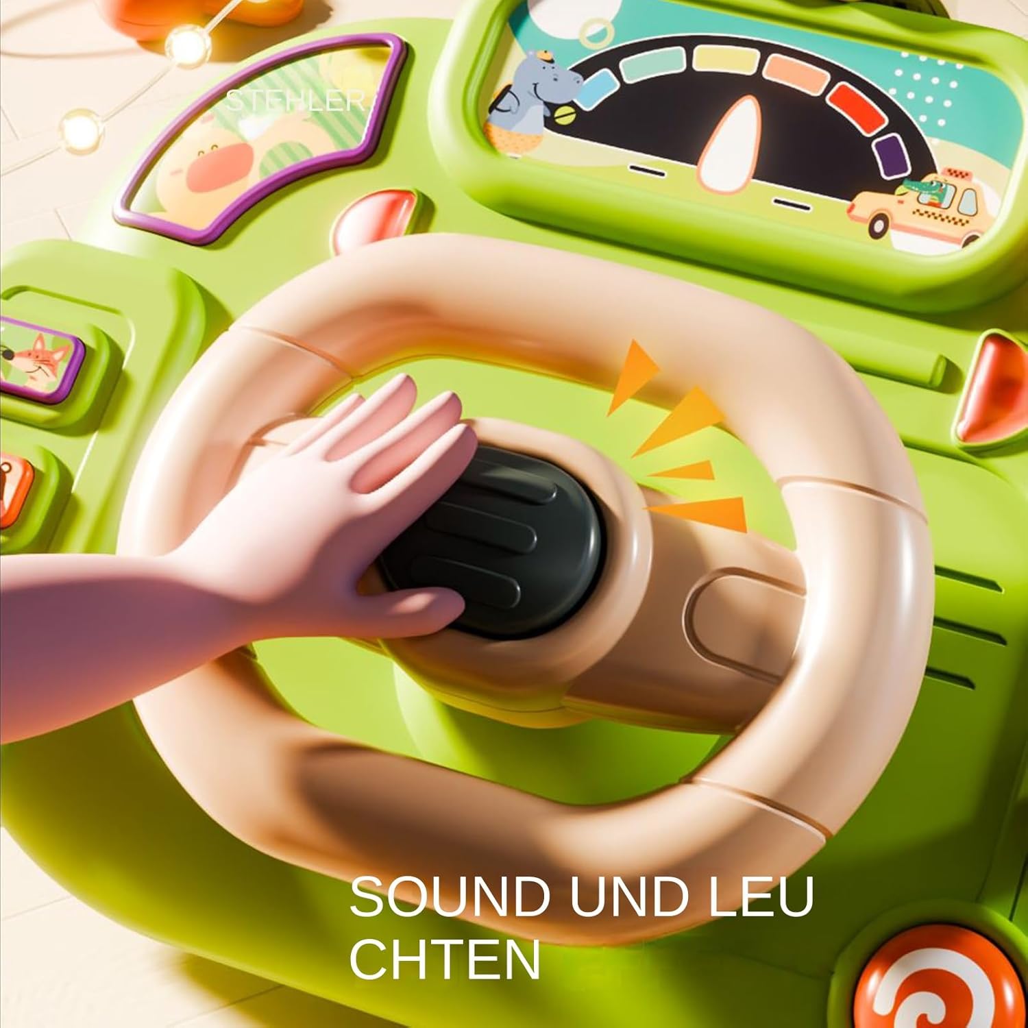 Spegnimento automatico: la modalità sleep integrata protegge la batteria e aumenta il tempo di gioco: se il dispositivo non viene utilizzato per 10 minuti, la funzione si attiva e intrattiene dolcemente il bambino con suoni rilassanti e luci soffuse. Uso pratico: i suoni di guida reali con effetti di luce simulano la guida dinamica e promuovono l'udito attraverso molteplici modalità di trigger. Apprendimento giocoso con facile utilizzo per i bambini. Buon regalo: regalo ideale per bambini per promuovere la cura e la crescita cognitiva. Consente ai bambini di comprendere i concetti di destra e sinistra in modo naturale attraverso attività ludiche. Lavorazione robusta: realizzato con precisione in robusto materiale ABS, questo giocattolo offre affidabilità costante e può resistere all'uso intensivo da parte dei bambini senza perdere la forma o l'affaticamento del materiale. Incoraggia l'attenzione: i bambini attivano il movimento dell'auto girando il volante, il che promuove l'attenzione e il divertimento e supporta il riconoscimento precoce della direzione attraverso il gioco interattivo.