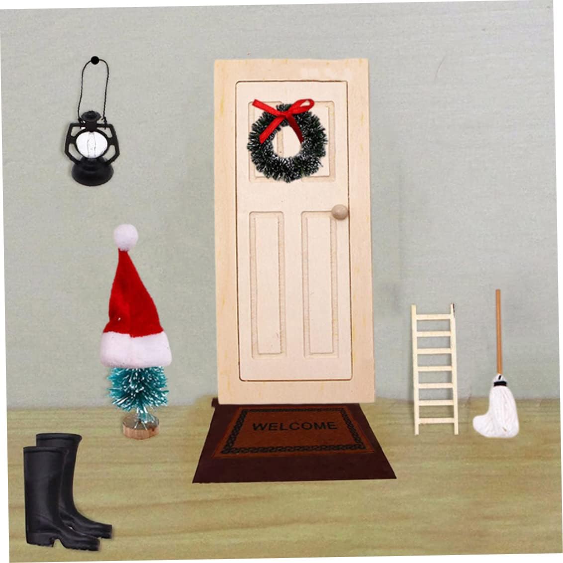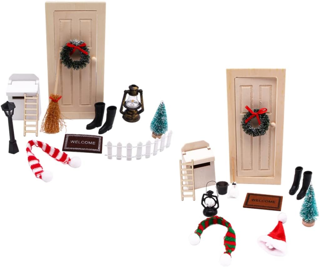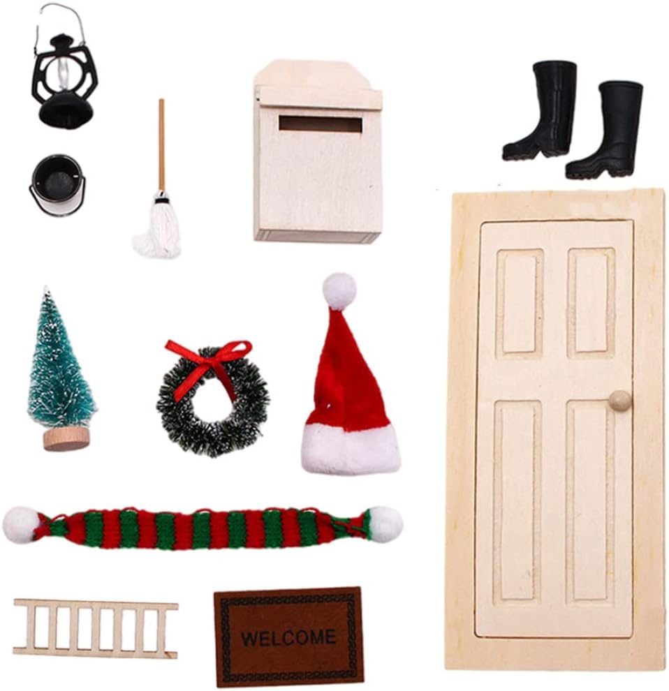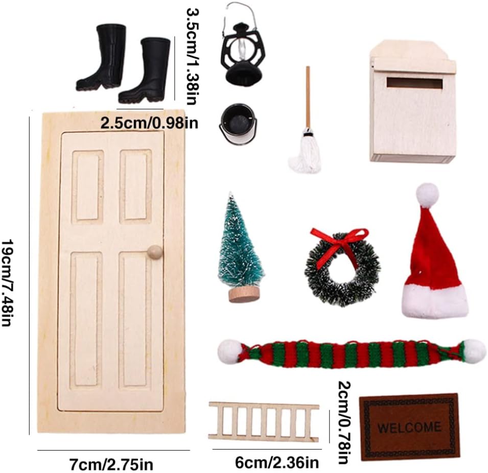 Atmosfera natalizia: entra nello spirito natalizio con i nostri accessori a tema natalizio! Il set viene fornito con una striscia luminosa scintillante, perfetta per illuminare il tuo albero di Natale in miniatura e creare un'atmosfera calda e festosa. Lascia che lo spirito natalizio risplenda nella tua casa delle bambole con queste affascinanti decorazioni. MATERIALE DI QUALITÀ E SICURO: Realizzate con cura in legno di alta qualità, le nostre porte delle fate sono costruite per durare. I dettagli intricati e la lavorazione artigianale conferiscono a queste porte un aspetto realistico e stravagante, rendendole un'aggiunta perfetta a qualsiasi scena in miniatura. Divertente legame genitore-figlio: questo set di porte fatate presenta una porta in legno realizzata con un materiale di legno originale, che aggiunge un tocco di fascino classico. Leggeri e poco ingombranti, gli accessori riutilizzabili stimolano l'immaginazione dei bambini, mentre i genitori partecipano al processo creativo e creano un giardino unico per accogliere gli elfi nella loro affascinante casa. Set di mobili per casa delle bambole da 12 pezzi: ogni confezione include 12 giocattoli per mobili per casa delle bambole, tra cui 1 mini porta, 1 micro cassetta della posta, 1 mini scala, 1 tappeto in miniatura, 1 albero di Natale in miniatura, 1 mini ghirlanda, 1 mini lampada a olio, 1 paio di mini stivali da pioggia, 1 mini scopa, 1 secchio, 1 mini cappello di Natale e 1 mini sciarpa. Questi accessori per la casa delle bambole sono perfetti per decorare la tua mini casa. FAI DIVERTIRE I BAMBINI: Che tu stia costruendo una casa delle bambole o un magico giardino fatato, il nostro set di porte fatate e accessori natalizi è un'aggiunta indispensabile. Crea ricordi preziosi con i tuoi cari mentre ti imbarchi in un mondo di meraviglie in miniatura e magia natalizia. Scatena l'immaginazione di tuo figlio con questo meraviglioso fai-da-te!
