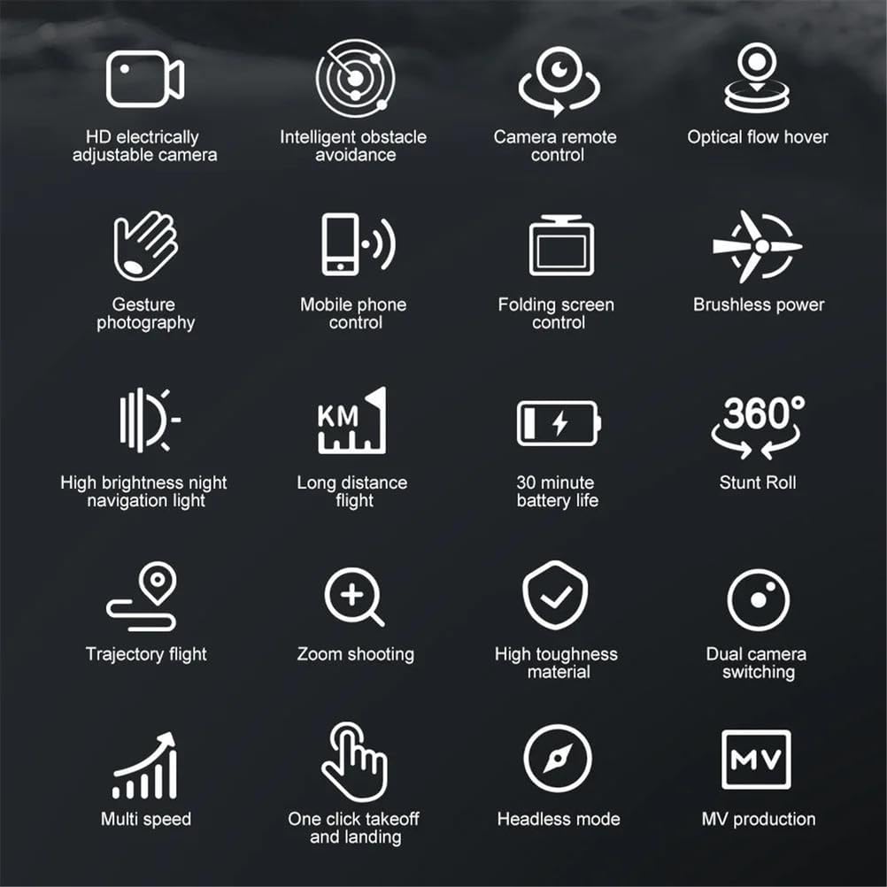 [Principianti e facile da usare]Scatena il pilota che è in te con questo drone con telecamera facile da usare. Con un peso di soli 120 g, il suo design pieghevole è perfetto per i viaggi. Funzioni come il mantenimento dell'altitudine e il ritorno a un tasto rendono il volo stabile e semplice. Cattura splendide foto e video aerei 4K senza sforzo. Il controller incluso con schermo offre una visualizzazione FPV in tempo reale, rendendolo il drone ideale per principianti, bambini e adulti che vogliono esplorare i cieli. [Creatori di contenuti]Migliora i tuoi contenuti con questo drone con telecamera HD 4K. Il sensore da 1/1,28 pollici garantisce riprese nitide e chiare dal cielo. Usa il tuo smartphone per la trasmissione e il controllo FPV WiFi in tempo reale. Pianifica riprese creative con la funzione di tracciamento del percorso per il volo autonomo. Questo drone compatto e portatile è il partner perfetto per vlog, riprese di viaggio e riprese di fotografie aeree mozzafiato. [Acquirenti attenti alle funzionalità]Sperimentate un volo intelligente con questo drone ricco di funzionalità. Vanta una distanza di controllo remoto di 5000 m, un'autonomia di volo di 23 minuti e una brillante fotocamera 4K. Utilizzate funzioni intelligenti come il ritorno con un solo tasto, la modalità headless e il volo autonomo con tracciamento del percorso. Il posizionamento stabile del flusso ottico garantisce riprese fluide. Questo drone avanzato ma intuitivo è progettato per prestazioni affidabili e straordinari video aerei FPV. [Acquirenti attenti a tecnologia e convenienza]Ottieni funzionalità professionali senza una configurazione complessa. Questo drone combina una potente fotocamera HD 4K con un'autonomia di volo di 23 minuti. La frequenza di 2,4 GHz garantisce una connessione stabile, mentre il giroscopio a sei assi offre un controllo ultra fluido. Il suo design leggero e pieghevole include protezioni integrate per la sicurezza. Un pacchetto di alto valore per chiunque cerchi un drone con fotocamera di alta qualità per il divertimento e la fotografia. [Divertimento e regalo]Il drone più divertente per tutti! Vola fino a 23 minuti e controllalo facilmente tramite app o telecomando. È dotato di spettacolari luci a LED per voli notturni e un design resistente con protezioni per le eliche. Funzioni come i capovolgimenti a 360° e il mantenimento dell'altitudine lo rendono emozionante e facile da pilotare. Questo è il drone regalo perfetto per principianti, bambini e famiglie che desiderano esplorare il piacere della fotografia aerea.