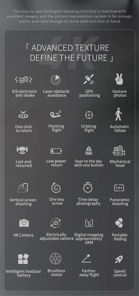 [Focus su principianti e facilità d'uso]Scopri panorami aerei mozzafiato senza sforzo con il drone GPS F22 S2 XR PRO+. Il suo GPS avanzato consente un volo stazionario stabile e il ritorno automatico alla base per un volo sicuro e senza preoccupazioni. Il design pieghevole e l'autonomia di volo di 40 minuti lo rendono il drone con fotocamera 4K perfetto per principianti e appassionati di viaggi pronti a catturare il mondo dall'alto. [Focus su prestazioni e autonomia]Sblocca immagini aeree di livello professionale con l'F22 S2 XR PRO+. Questo potente drone vanta un'impressionante autonomia di controllo di 6000 m e un'autonomia di volo massima di 40 minuti. Cattura foto ultra nitide da 50 megapixel e video 4K fluidi. Dotato di sistema di elusione visiva e di un robusto motore brushless, questo drone professionale 4K è progettato per esploratori ambiziosi. [Focus su viaggi e portabilità]Il tuo compagno di viaggio perfetto per contenuti aerei straordinari. L'F22 S2 XR PRO+ è un drone pieghevole compatto e leggero che si adatta facilmente allo zaino. Con un peso di circa 585 g, è progettato per l'avventura. Aprilo rapidamente per catturare splendidi video e foto 4K dei tuoi viaggi, rendendo ogni viaggio indimenticabile con questo versatile drone da viaggio. [Focus su fotocamera e stabilizzazione] Cattura filmati di qualità cinematografica con il drone F22 S2 XR PRO+. La sua fotocamera ad alta risoluzione da 50 milioni di pixel è stabilizzata da un gimbal a 3 assi e dalla stabilizzazione elettronica dell'immagine (EIS) per video 4K fluidissimi anche in movimento. Questo è lo strumento ideale per i creatori di contenuti e gli appassionati di fotografia aerea che cercano risultati professionali. [Focus su caratteristiche chiave e valore] Il drone F22 S2 XR PRO+ 4K Pro GPS combina alte prestazioni e un ottimo rapporto qualità-prezzo. Questo quadricottero ricco di funzionalità con fotocamera include il posizionamento GPS, un motore brushless resistente e un telecomando a lunga distanza. Goditi un divertimento prolungato con un volo di 40 minuti e cattura splendide riprese aeree in 4K HD per un'esperienza di volo senza pari.