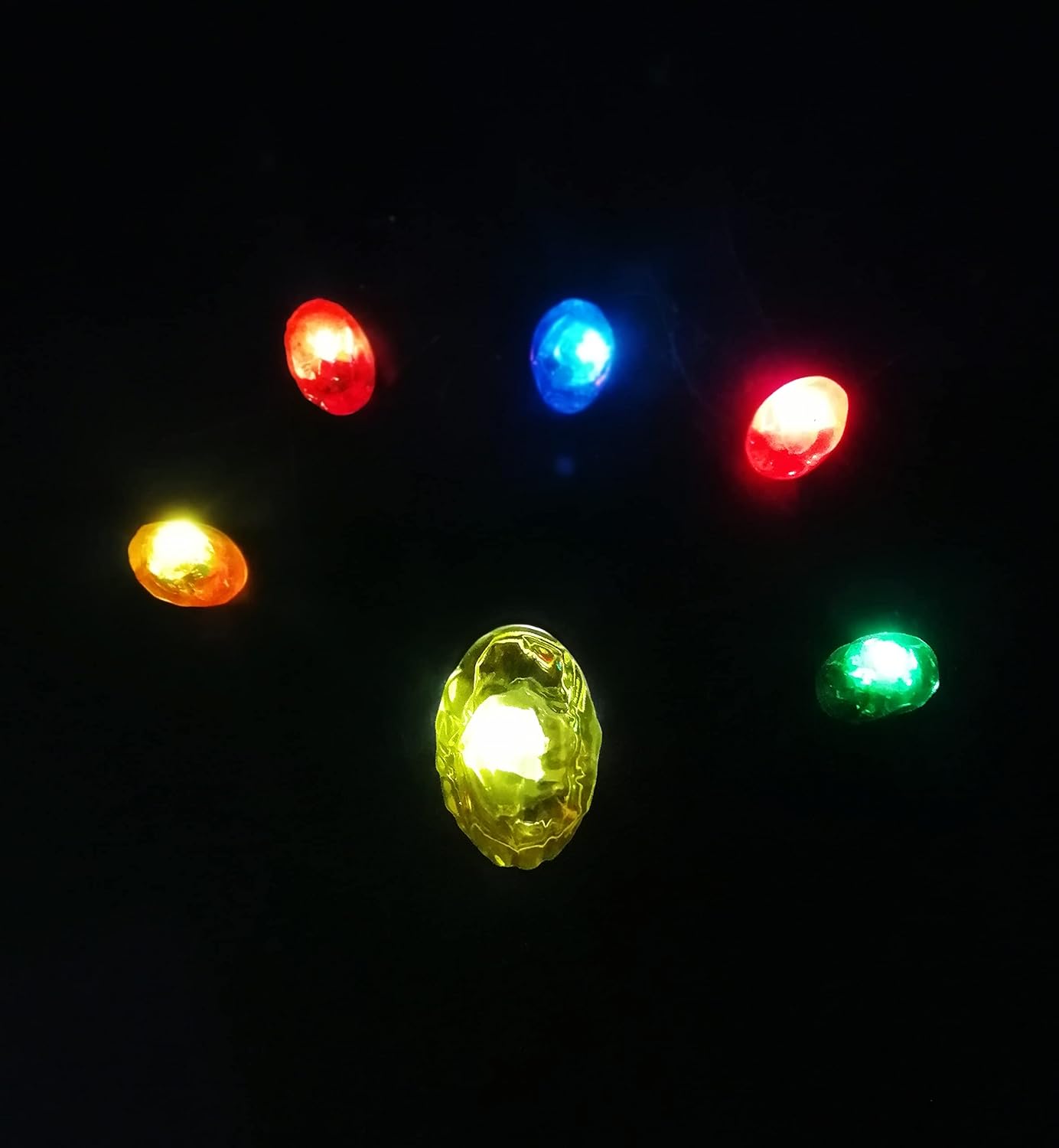Il pacchetto include: 6 gemme dell'infinito + sfera ORB Star Lord Power Caratteristiche: Ogni gemma ha un interruttore, è necessario spingere indietro le gemme dal metallo. La luce LED delle gemme ha 3 modalità, statica, lenta, lampeggiante. La prima pressione lampeggia, la doppia pressione è lenta, la terza volta che si preme la luce LED è statica. [Materiale]: il nostro Infinity Orb Prop ha scelto PVC rigido di alta qualità. Design delicato, grande maestria. Diametro della pallina da collezione: 8 cm. [Occasione]: questi misteriosi oggetti di scena della galassia sono perfetti per Halloween, feste in maschera, feste di cosplay, oggetti da collezione di film, decorazioni per la casa. È anche un'ottima decorazione per la tua casa per una collezione.