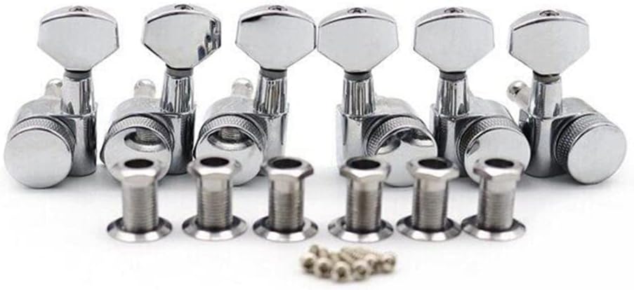 Accordatori sigillati con bloccaggio per chitarra elettrica stile . Rapporto di trasmissione: 18:1 Adatto per fori per pioli standard da 13/32 pollici (10 mm). Mantieni la tua chitarra sempre accordata Sintonizzatori con blocco automatico (tuning pioli). Ingranaggio interno per impieghi gravosi.