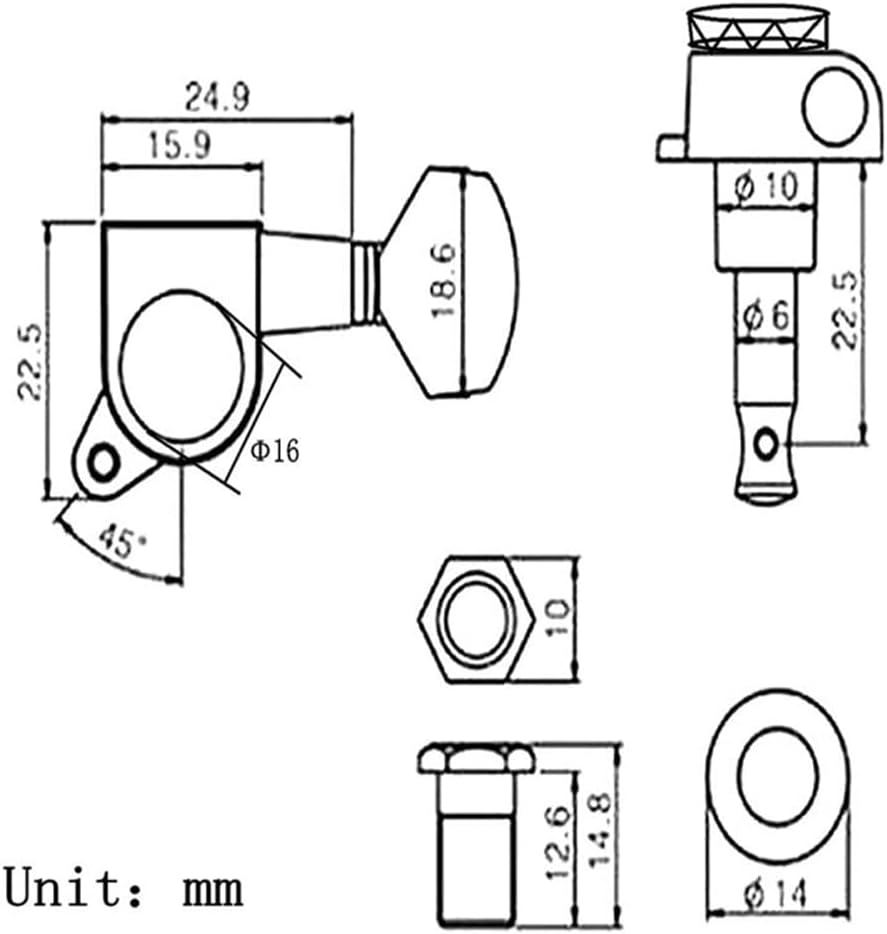 Accordatori sigillati con bloccaggio per chitarra elettrica stile . Rapporto di trasmissione: 18:1 Adatto per fori per pioli standard da 13/32 pollici (10 mm). Mantieni la tua chitarra sempre accordata Sintonizzatori con blocco automatico (tuning pioli). Ingranaggio interno per impieghi gravosi.
