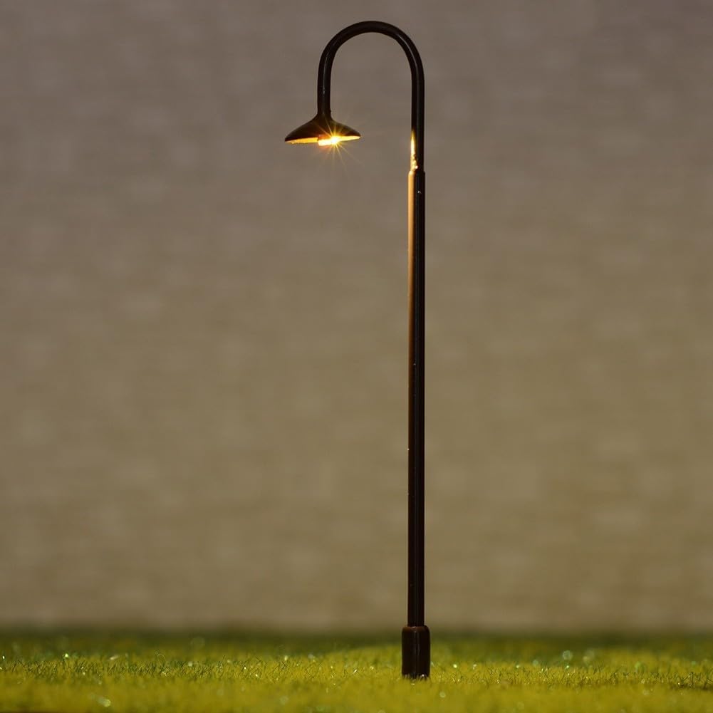 【Lampioni stradali a LED per modellini ferroviari】 Questi lampioni a LED sono progettati per modellini ferroviari in scala OO o HO. Hanno un'altezza di 75 mm, il che li rende ideali per creare un effetto di luce realistico nel tuo plastico ferroviario. 【Bassa tensione e corrente】 Le luci funzionano con una bassa tensione di 3 V e una corrente di 20 mA. Ciò garantisce efficienza energetica e sicurezza durante l'uso. Compatibilità: ogni set di luci è dotato di resistori compatibili in modo che possano essere utilizzati con fonti di alimentazione da 12 V o 16 V, se necessario. Questa flessibilità li rende adatti a una varietà di configurazioni di modellismo ferroviario. 【Effetti di luce realistici】 Con le luci a LED e il cablaggio adeguato, questi lampioni possono essere facilmente illuminati e aggiungere un tocco realistico al tuo plastico ferroviario. Forniscono un'illuminazione visivamente accattivante che migliora l'estetica generale della scena del modello.